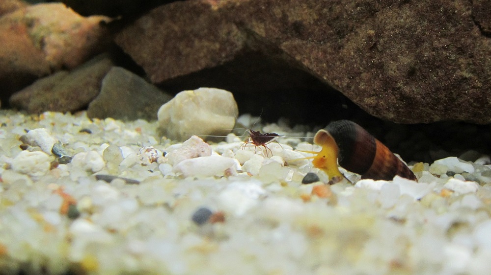 A pomaly sa tiež začínam zbavovať tvorov, ktoré tam boli pôvodne len zábehovo, teda bežné slimáky a Bloody Marry...z pôvodných štyroch už sú samozrejme 3 várky mladých, nechem aby sulaweskam moc kokurovali s potravou...okrem toho, sú tak plaché, že majú rešpekt aj pred neokaridinámi.