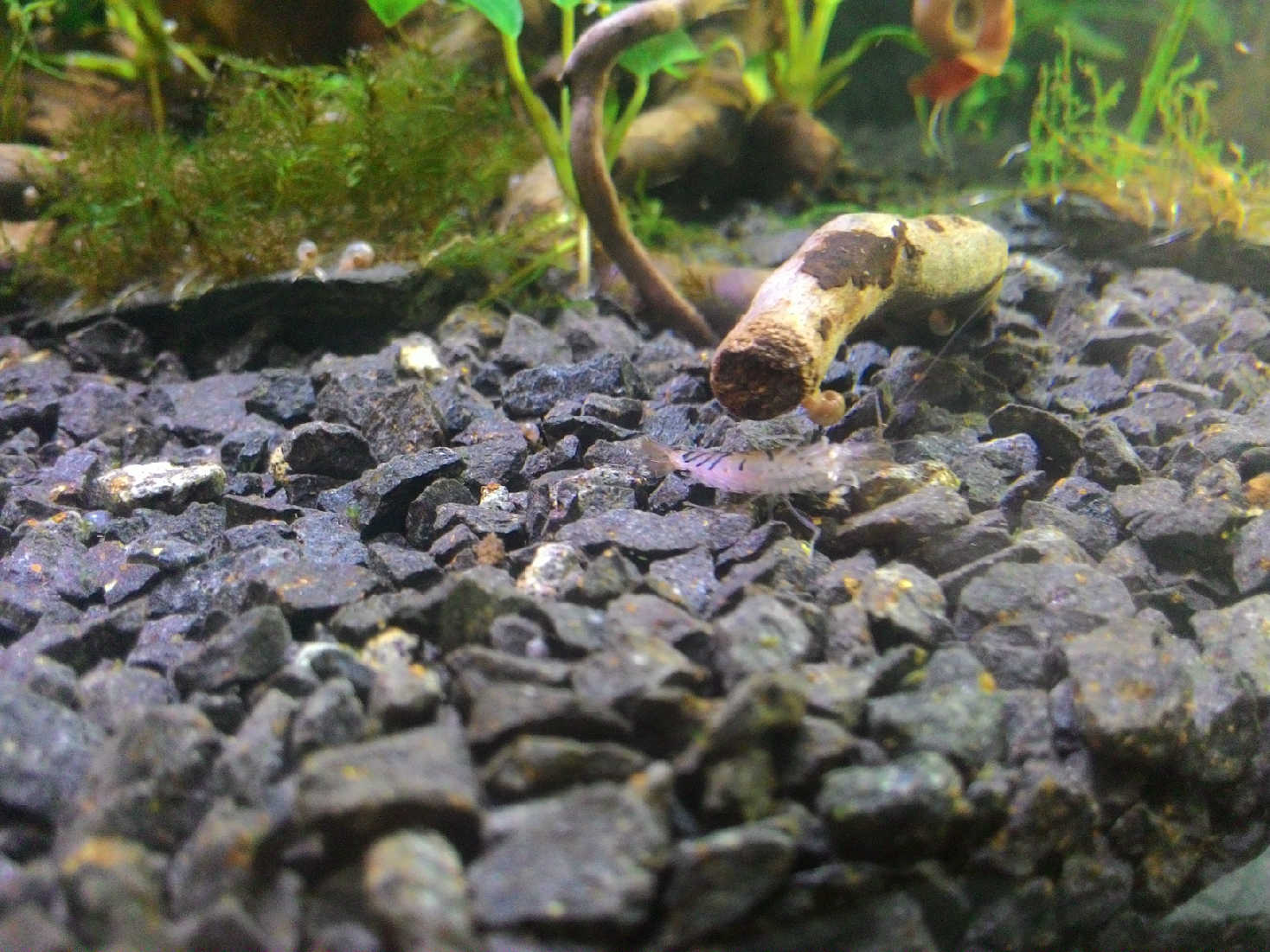 inak prvy dojem - krasne zive rybky, len neviem, ci su moc vhodne ku krevetkam ... prve co tie rybky robili je, ze dzobali do vsetkeho, ci sa to neda zjest vratane malych slimakov, ktorych v papuli vlacili po celkom akva ... takze ak by tam boli teraz nejake drobce od krevetiek, asi by posli velmi rychlo ... ale je to len prvy dojem