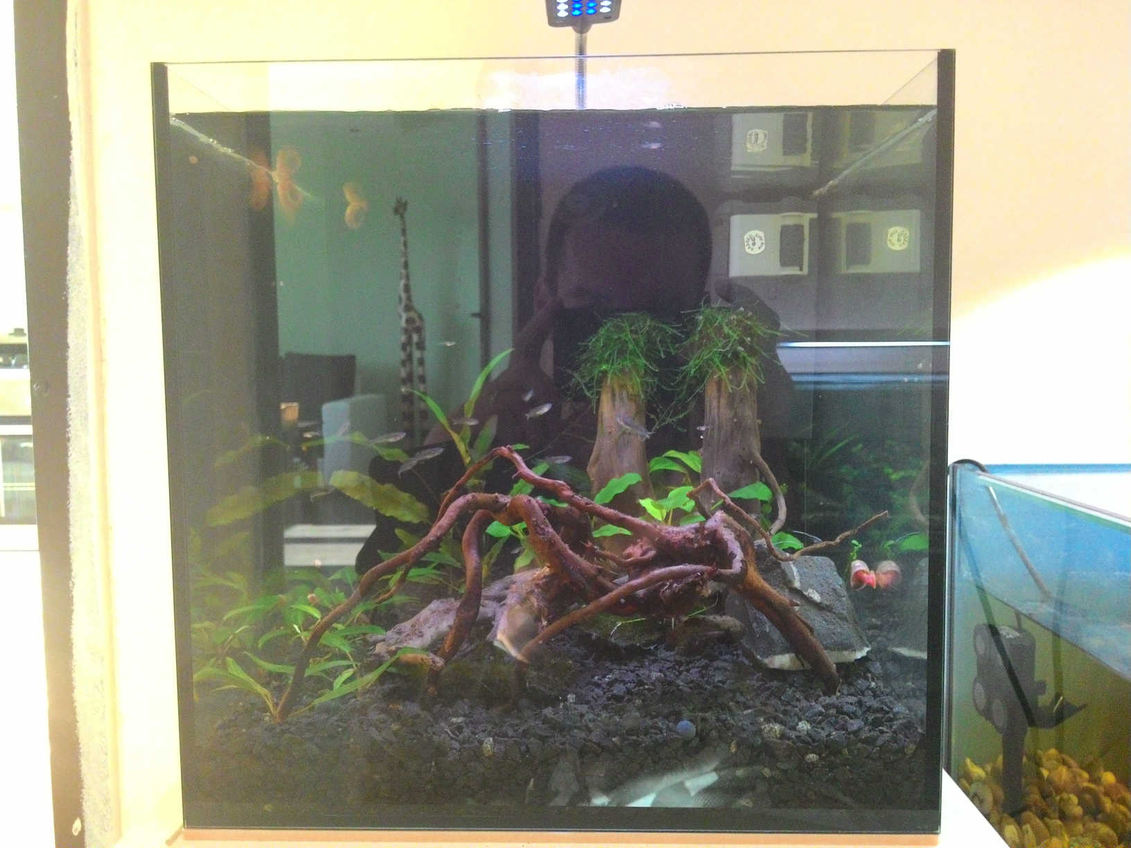 a po chvylu pozerania som sa rozhodol tam dat jedno drevo, lebo bez neho to nebolo ono (tusim nedokazem mat akvarium bez dreva)