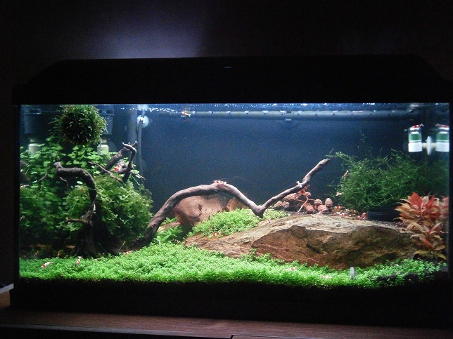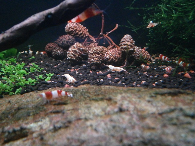 krevetkam sa dari, dalsie samicky maju male a dalsie nosia. sa nejak rozbehli je tam kopa drobcov. cez vikend doplnim foto. parametre vody po vyhodeni keramickych valcekov z externeho filtra sa drzia, neregistrujem od vtedy ziadne vykyvy. Tak isto aj rastliny sa rozbehli, koberec z cuby sa pekne rozrastol a zhustol.