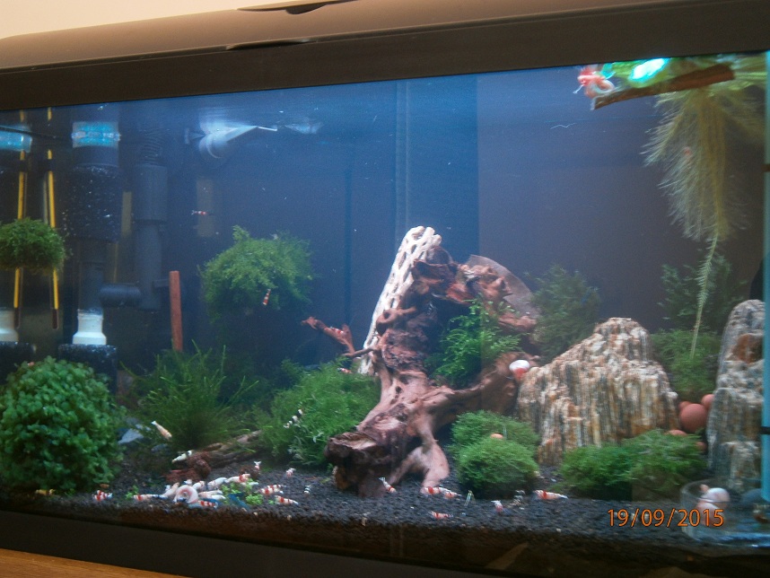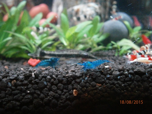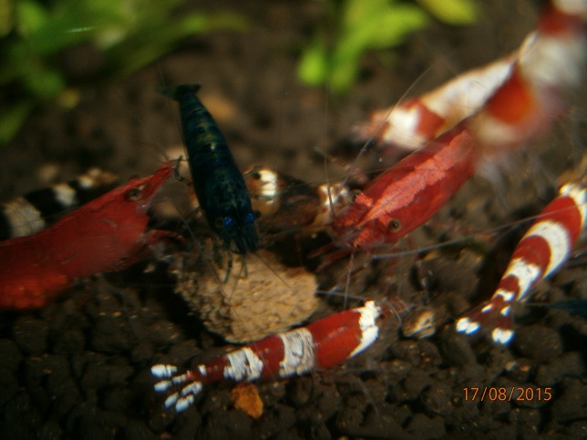 Po prelieceni akva ziadny uhyn, krevetky sa zacali aj mnozit, dalsich par samiciek nosi a dalsie dve modre su napratane na prasknutie. Hnojivo na rastliny som prestal pouzivat a tak isto aj co2ku som nahradil tekutou co krevetky privatali. Ako som prestal davat co2 su krevetky culejsie. Pomohli aj pripravky od benibachi ktore objednavam z polska, buduci tyzden ocakavam dalsiu zasielku.