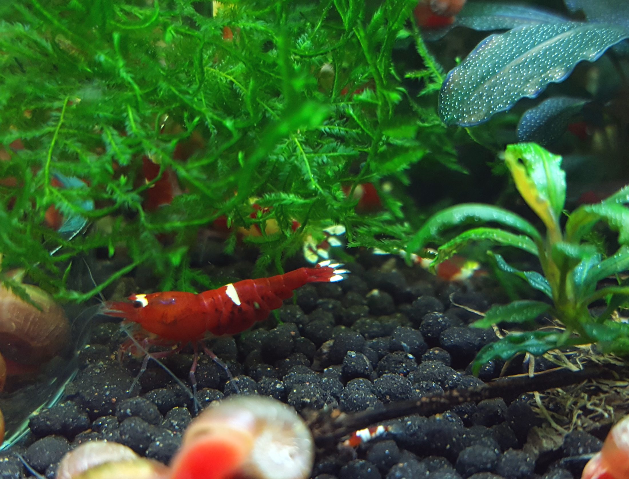Malý update o nádrži s Platinum soil - krevetky som do nej hodil po 5 týždňoch od založenia a všetky žijú. Pristáli v nej kríženci od samca PRL Benibachi a samíc PRL Akaebinosato čo boli dovtedy v breedingboxe. Voda je stále kryštálovo čistá a parametre sú fajn: