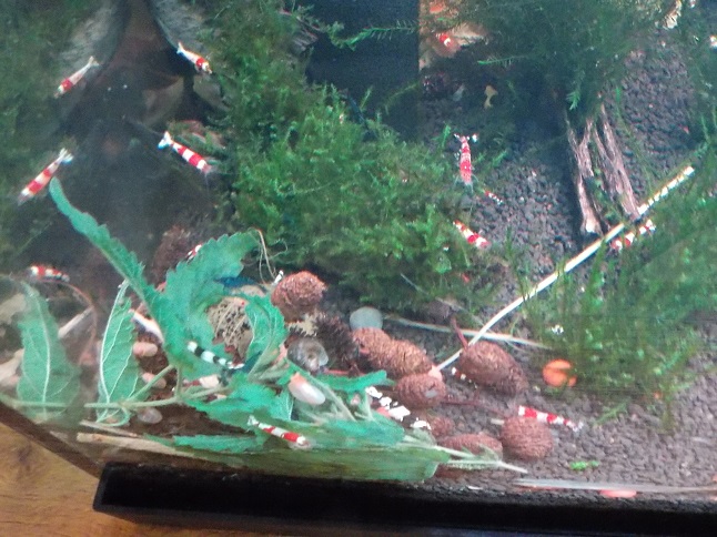 uhyn krevetiek som zastavil riadnim krmenim, ked je krevetiek viac musia sa krmit stale a nie ze si nieco najdu. Uhyn bol koli kanibalizmu oslabenej krevetky, ked sa zvliekla alebo pustila vajicka ju hned napadli ostatne krevetky, krevetky krmim 3x denne a maju stale zihlavu a zelene listie v akva, co je na foto zozeru za 24 hodin a este 8 platkov krmiva.