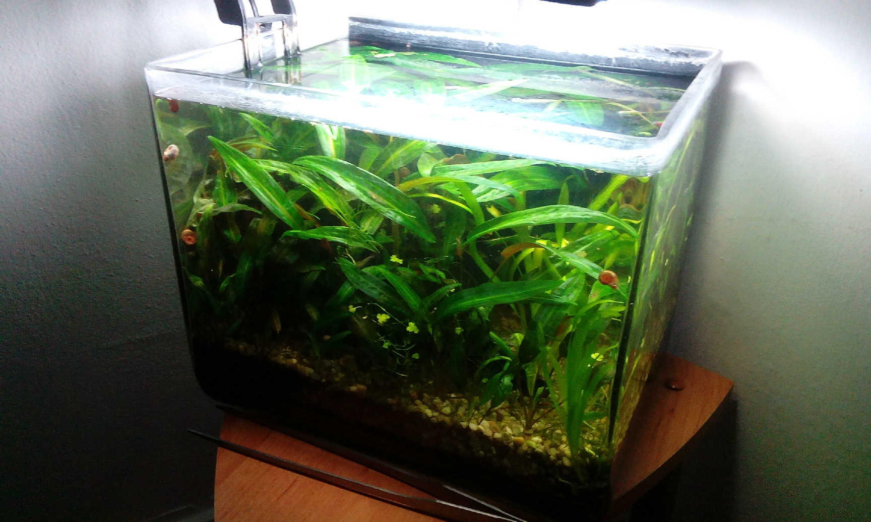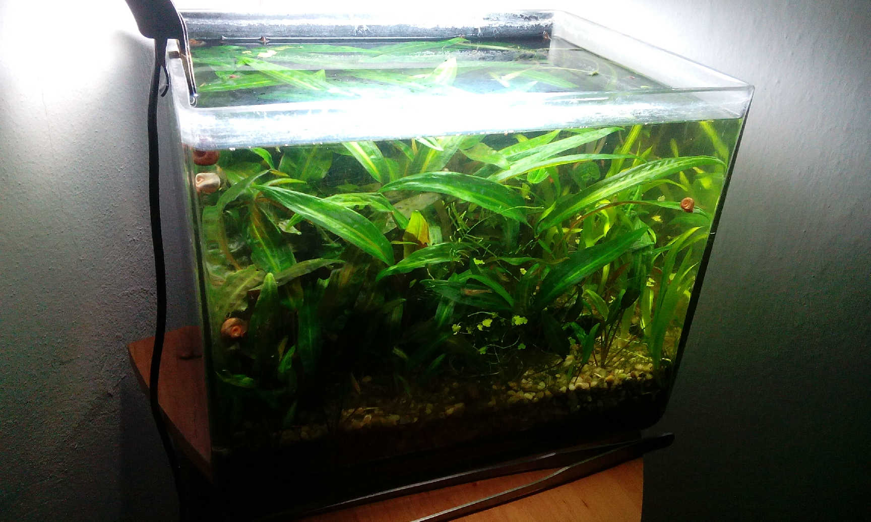 ako pretym, tak aj teraz, akvarium funguje same, takmer bez udrzby (raz mesacne menim vacsiu cast vody) bez techniky okrem svetla, riasy ziadne. kdo by chcel cryptocoryny aff., mozem par vytrhat