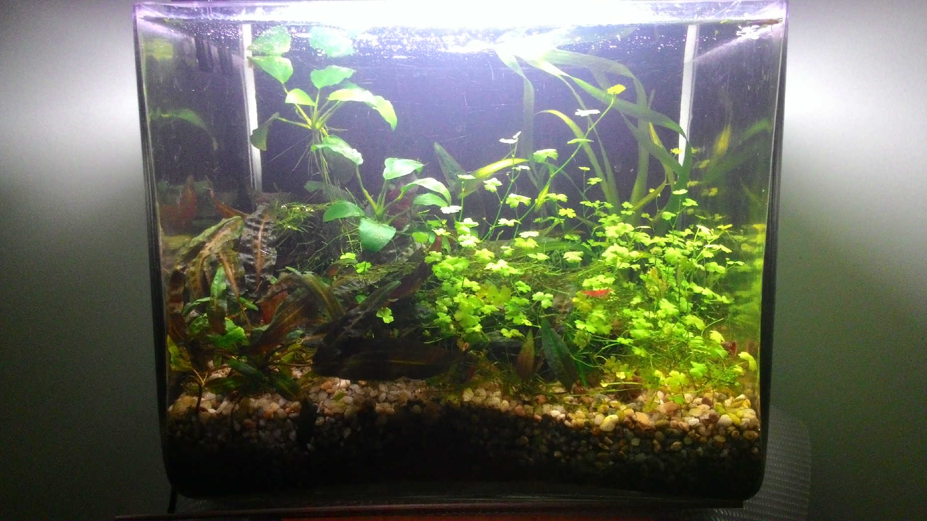 toto je aktualna fotka ssp ... bohuzial momentalne bez krevetiek ... postupne casom sa vytratili, asi som ich trosku zanedbal, krmil pomenej a tak sa mladym asi nedarilo a stare postupne poodchadzali. teraz tam behaju len slimaky a plavu mikrorazborky.