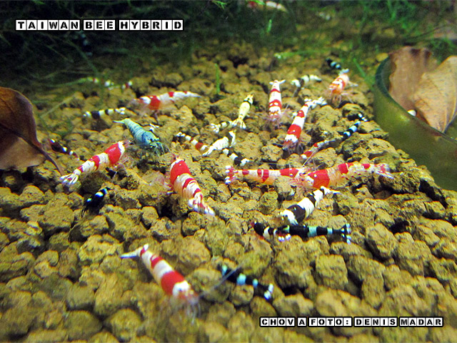 Prikladam aj foto vsetkych krevetiek Taiwan Bee Hybrid, z ktorych mi vysli Red Ruby, Red Wine, Panda, Shadow Panda, Blue Bolt. V akva som videl aj jeden maly King Kong, skoda ze sa mi ho nepodarilo odfotit.