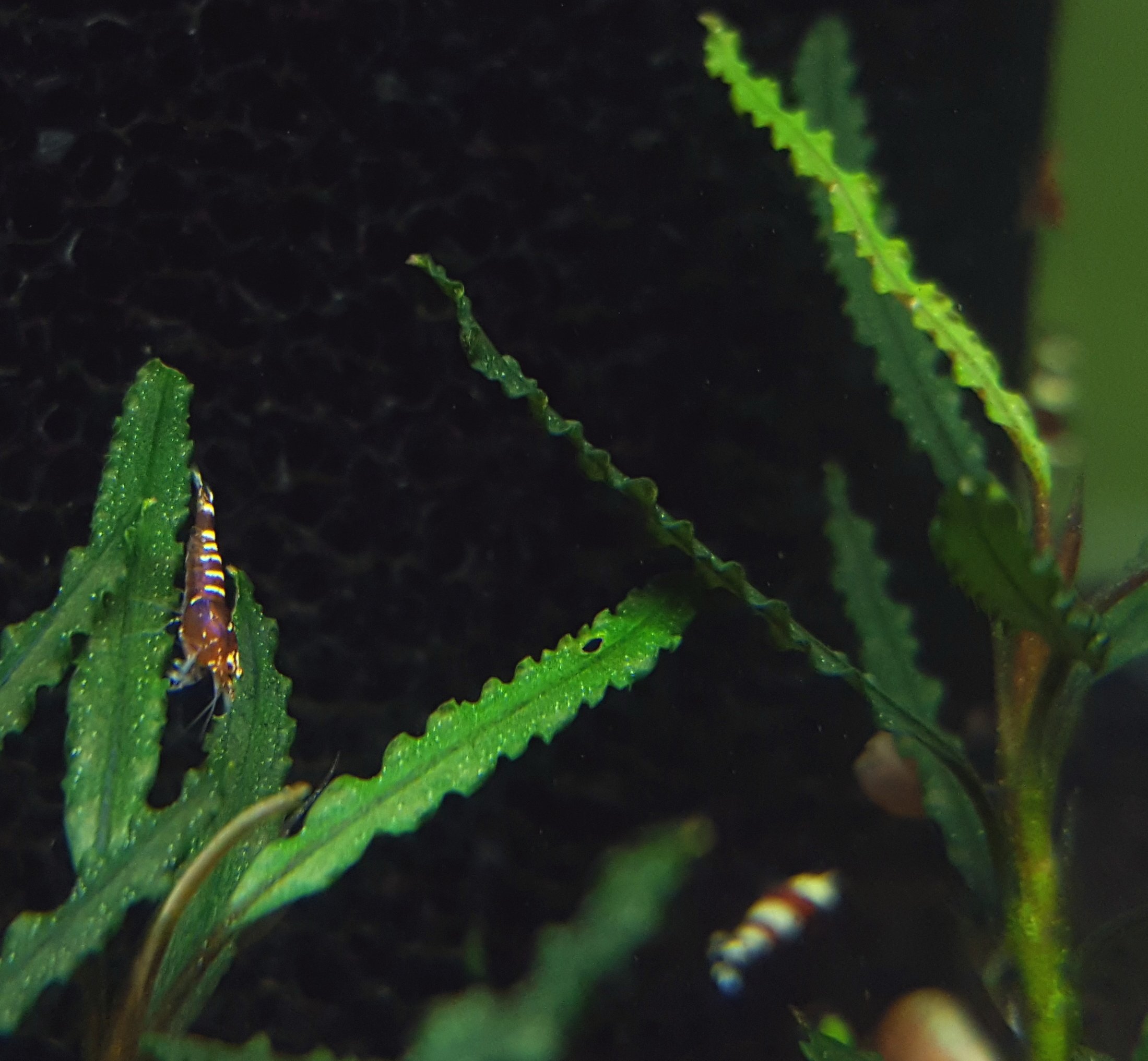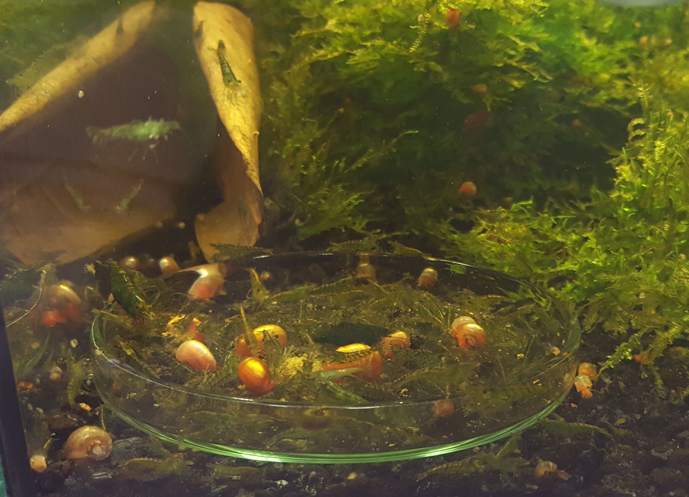 Nová nádrž pre Neocaridiny v práci - 70x30x35. Dno je Rataj Volcano black, voda RO + GH+/KH+. Osvetlenie ledkove z číny 2x 10W filter rohový bublifuk. Ešte musím nalepiť čiernu fóliu na zadnú stenu nech nevidno tú klímu za akvárkom