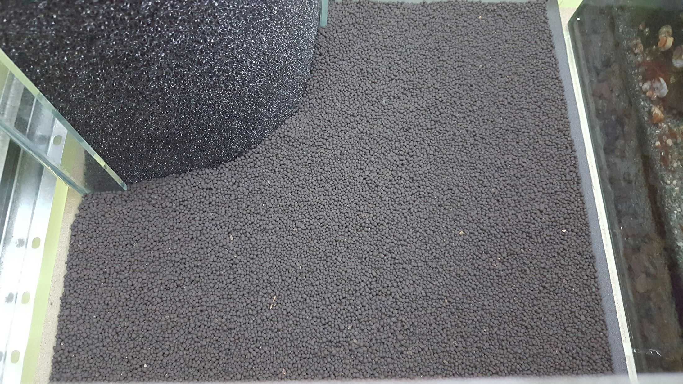 Do druhého regálu pridaná posledná chýbajúca nádrž. 40X36X35 dno Ebi Gold s prídavkom Mironekuton + Bacter AE + Sky Fish M1, filter molitanový, svetlo LED:
