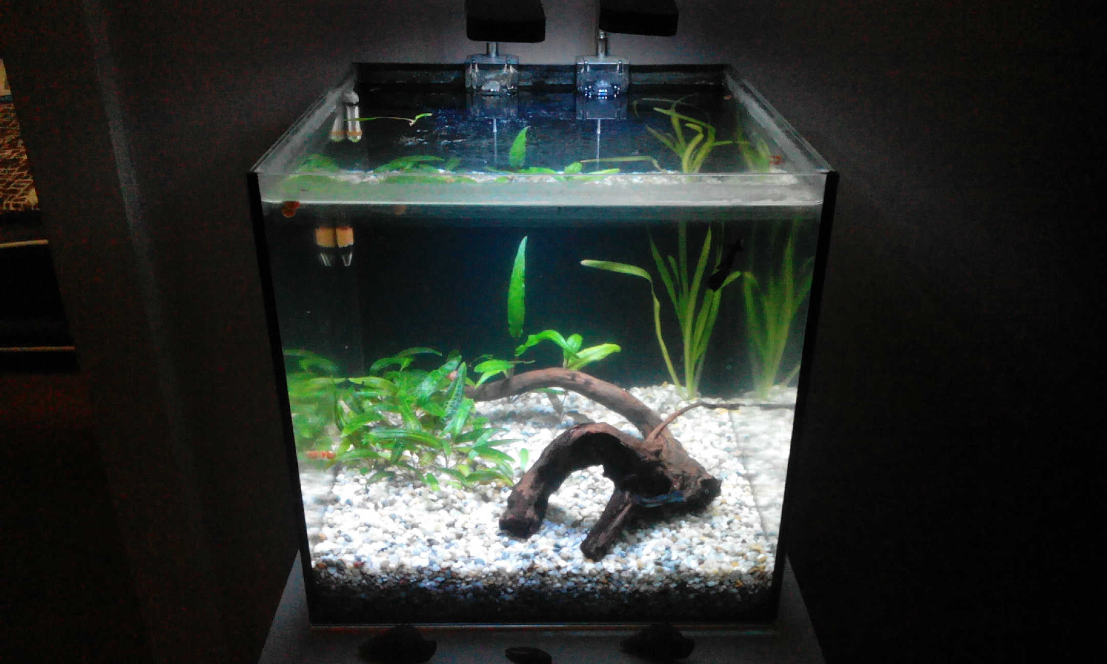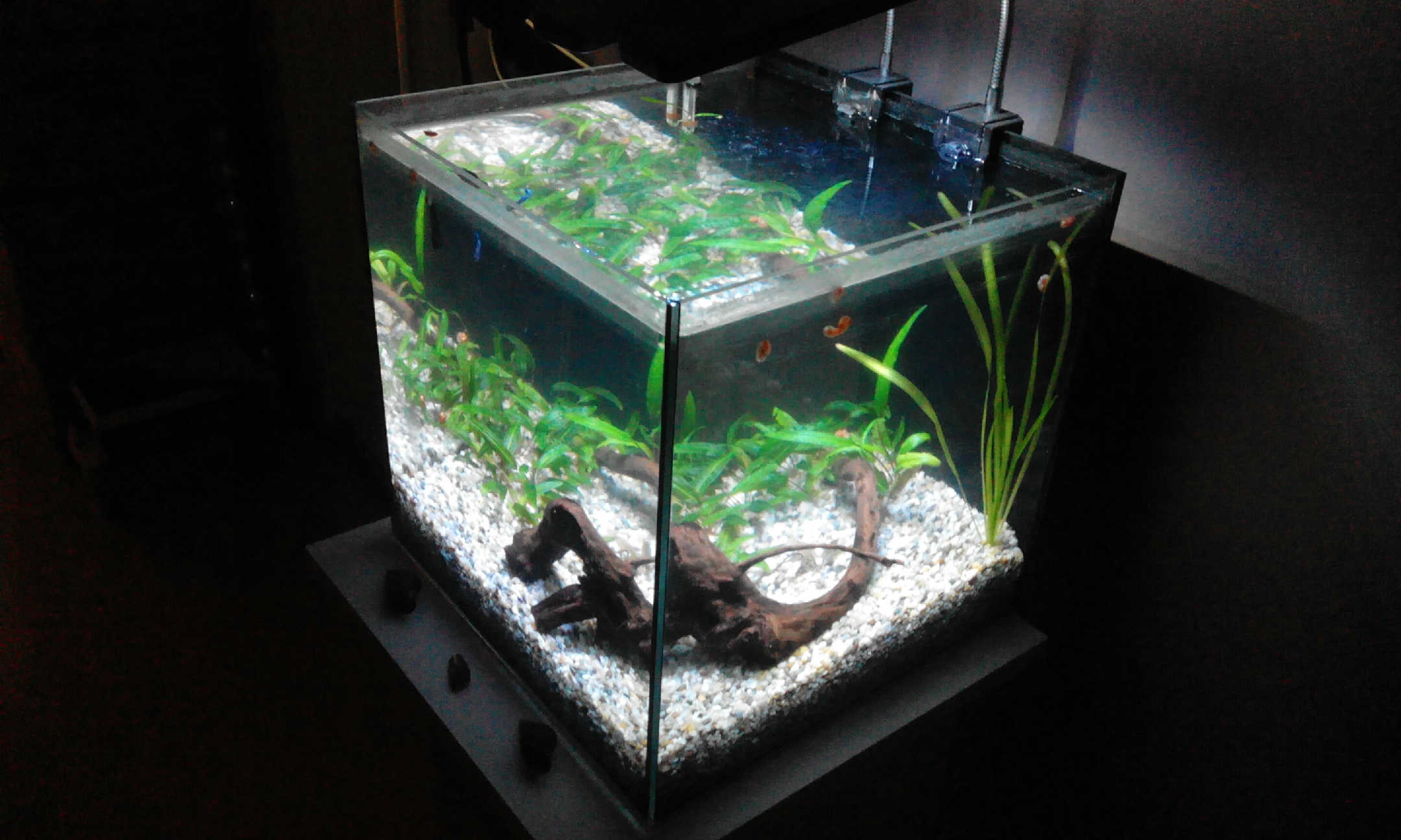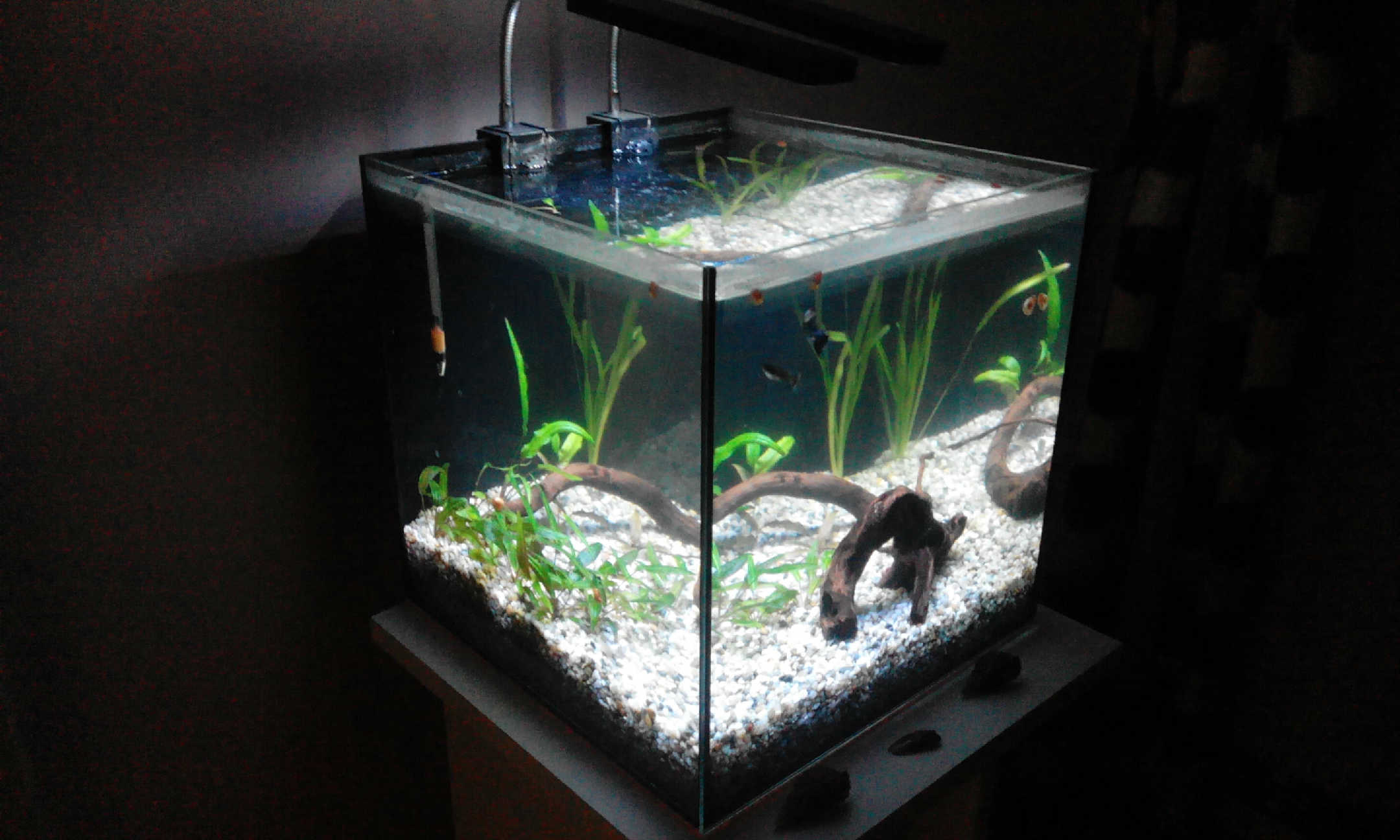guppy su len na zabeh spolu so slimakmi, coskoro vsak pojdu prec, pretoze potrebujem premiestnit bojovnicu a toto je jedine akva, kde nikoho nezabije alebo nikdo ju