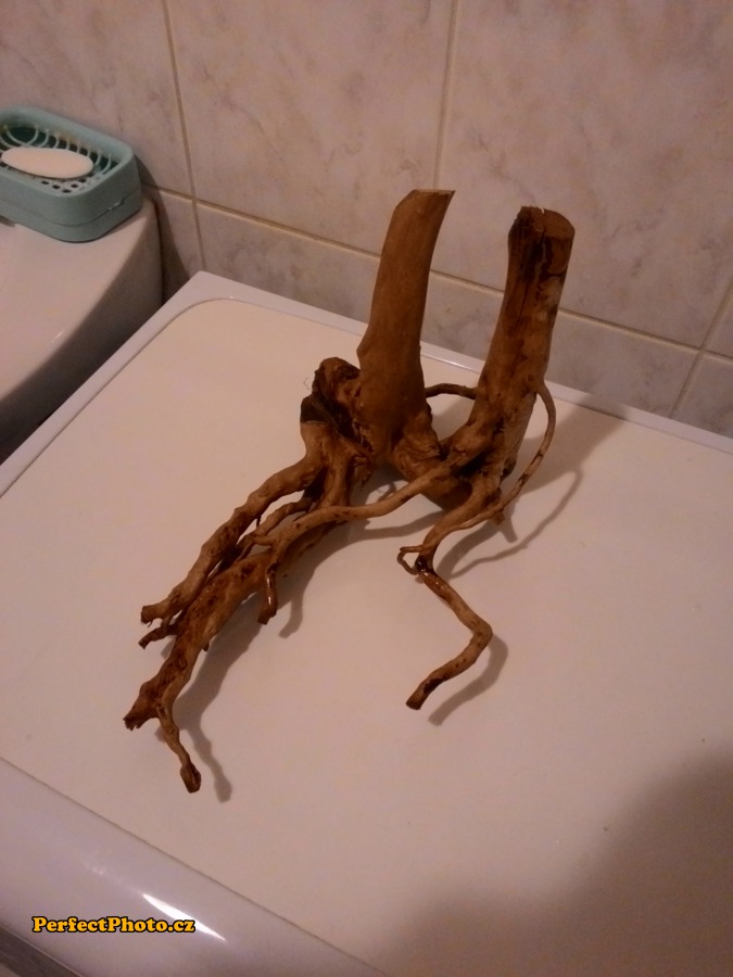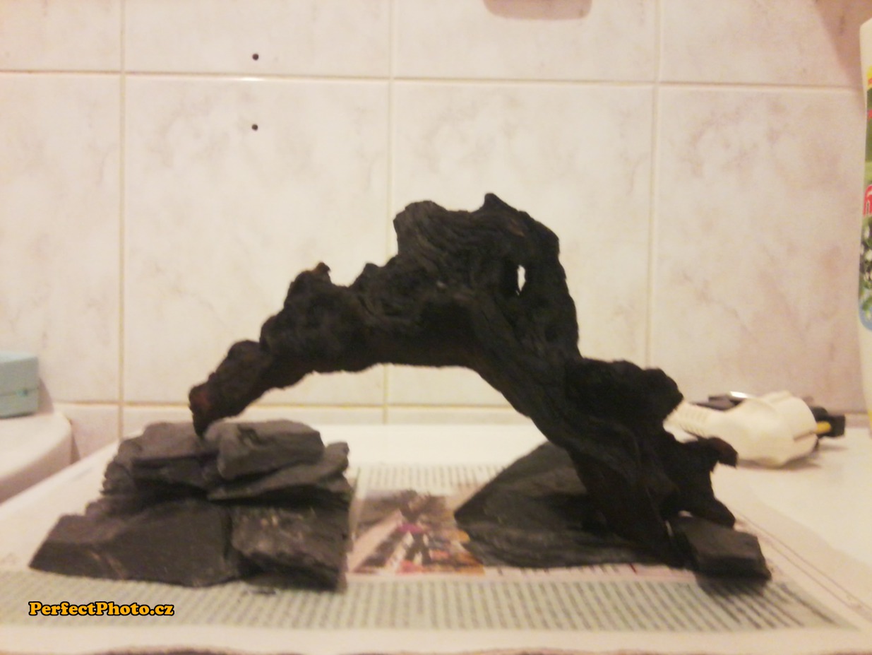 ja som zástancom low-tech a jednoduchých akvárií. Predsa len mi v tomto samochode vadia tie dva kamene. viem, že sú zadarmo, ale ak by si išiel do hocijakej predajne Kameňa, napr. ako ideš z mesta do rače po ľavej strane, dáš dedkovi 50 centov na pivo, určite by ti dovolil vybrať namiesto toho 2 tmavé bridlice alebo andezit, prípadne čadič. Mne tam tie bledé kamene nejdú, to mačacie zlato v štruktúre mi príde ako päsť na oko a aj tak ti to zarastie riasou. Ak by si nič nemenil, len vymenil tieto dva kamene, vyzeralo by to super. aj oni by sa potiahli patinou a ak by si tam prikvačil len pár stebiel machu, uchytil by sa na nich a plazil by sa ďalej na ten koreň.