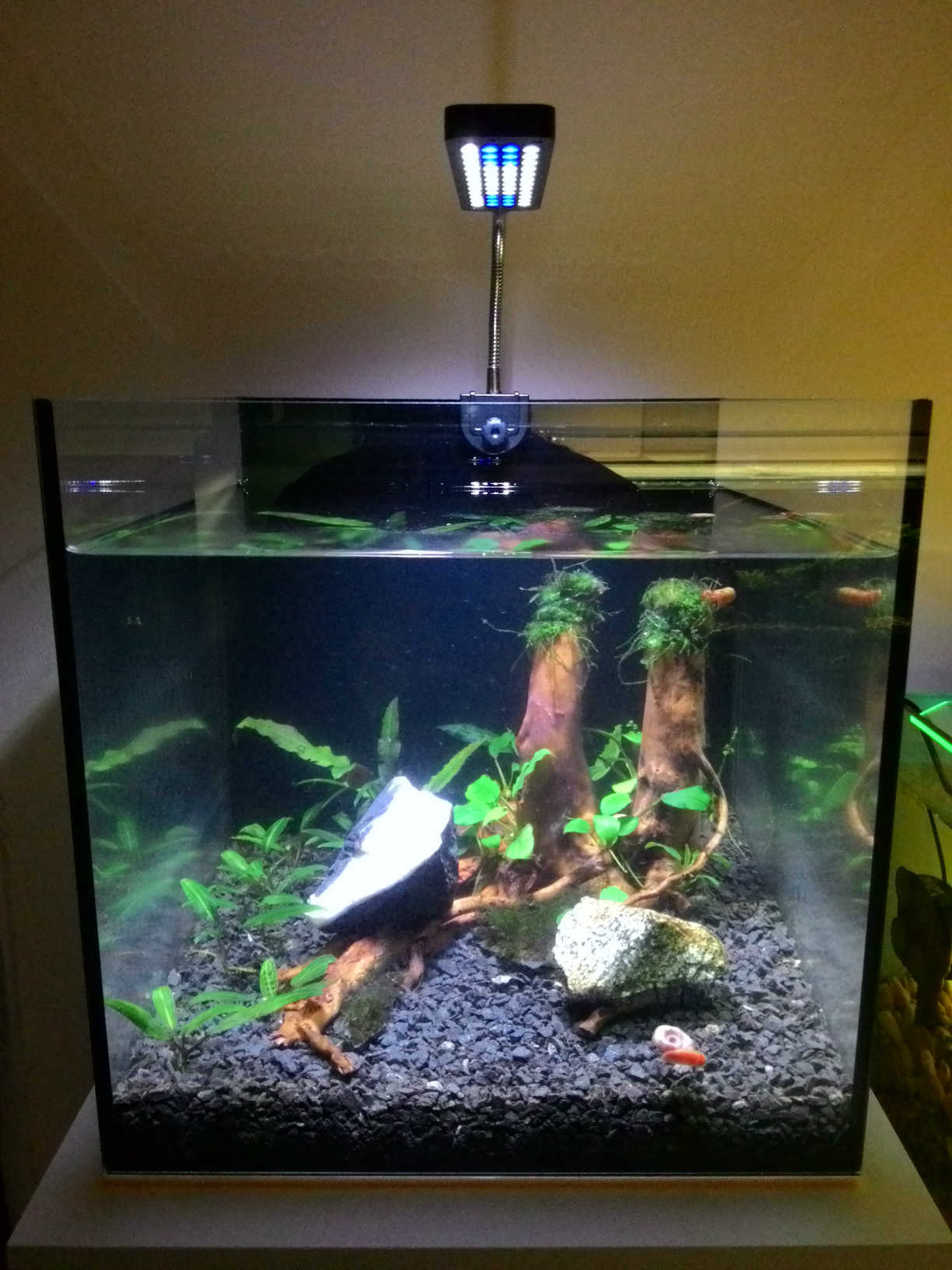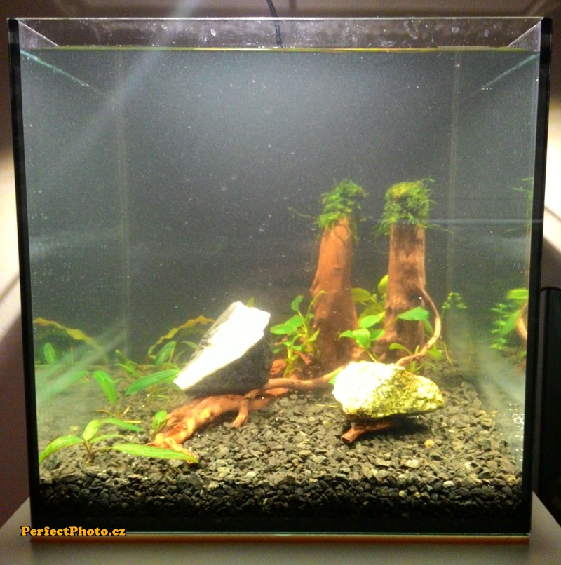 akvarium je este len objednane (objednane mam 2 :)) - atypicky rozmer (take v obchode nedrzia len same obdlzniky a ja som chcel kocku)