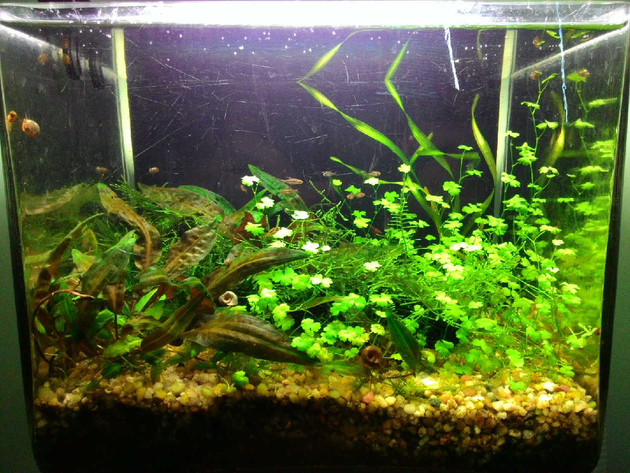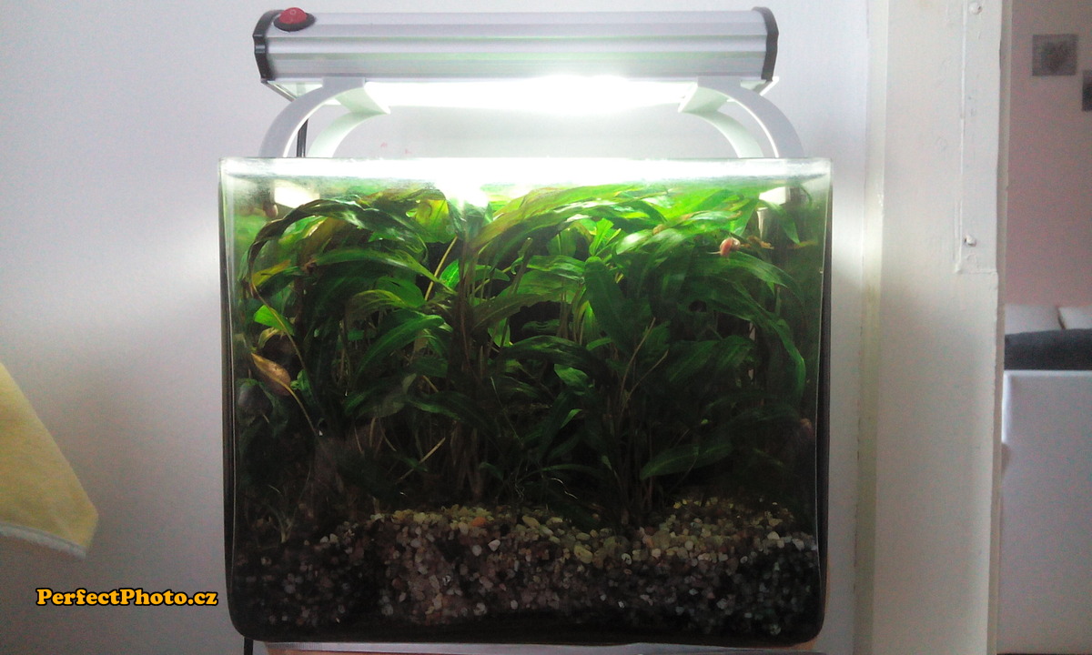 ako pretym, tak aj teraz, akvarium funguje same, takmer bez udrzby (raz mesacne menim vacsiu cast vody) bez techniky okrem svetla, riasy ziadne. kdo by chcel cryptocoryny aff., mozem par vytrhat