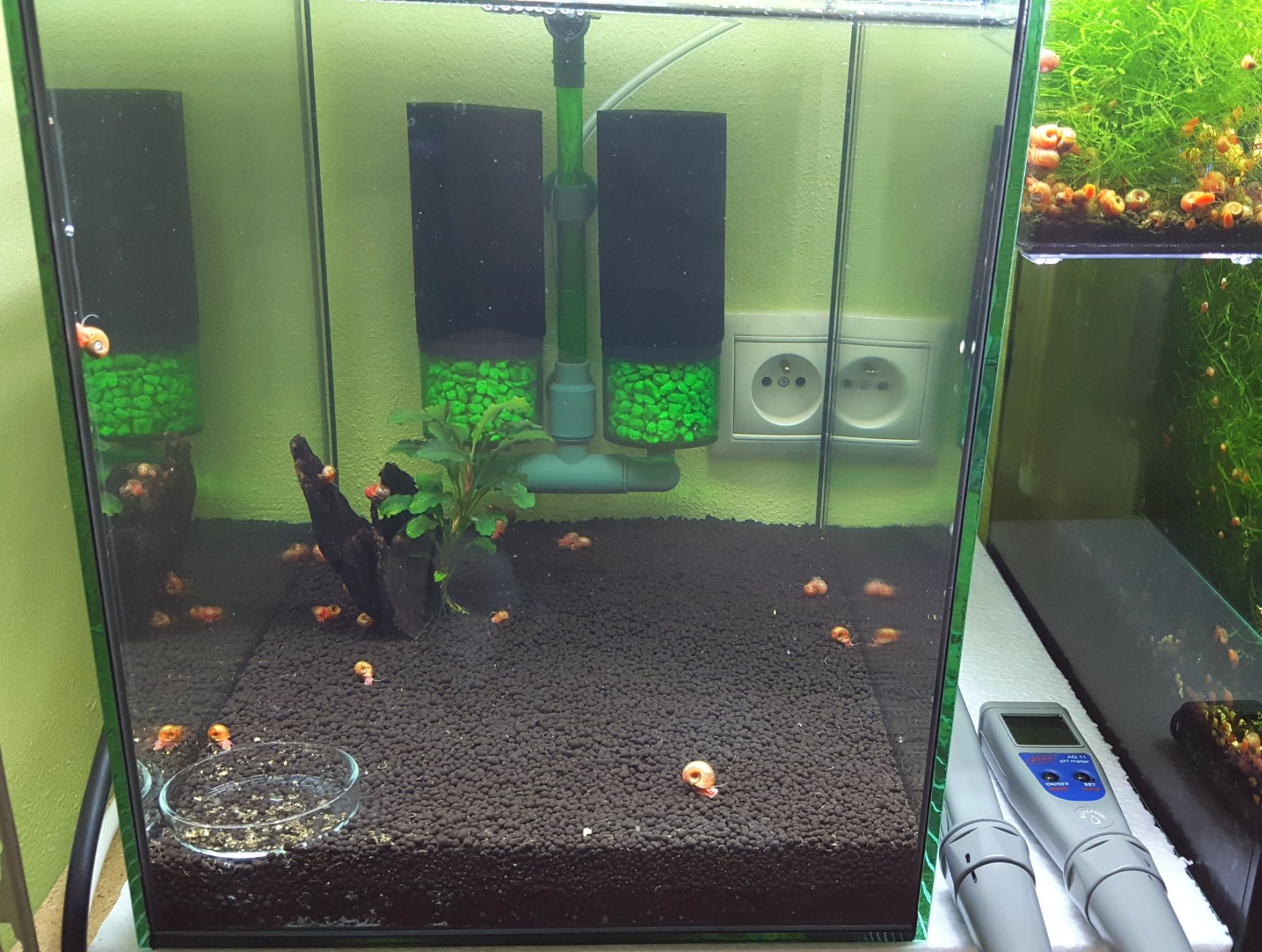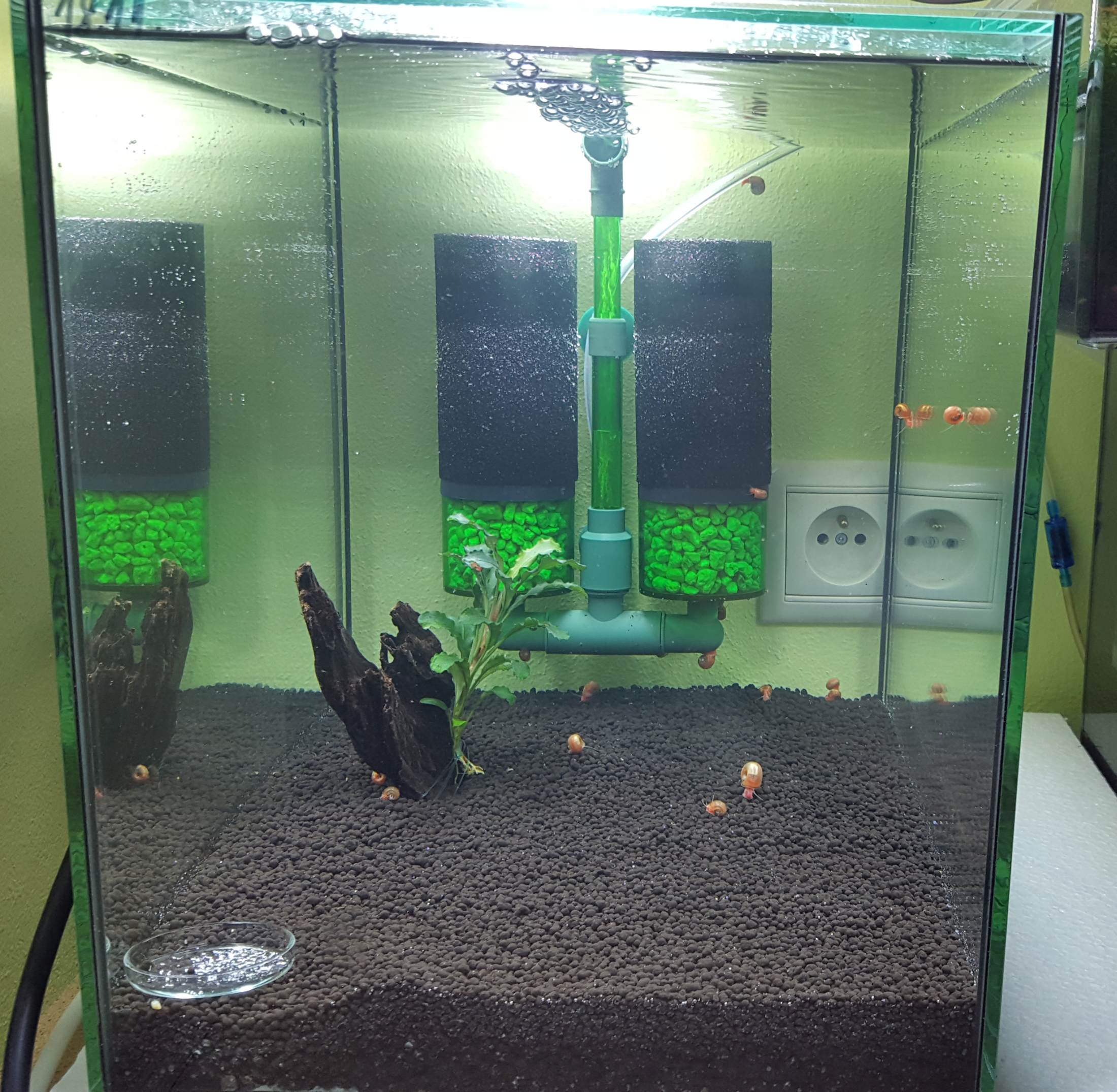 24 hodin po napusteni nadrze s Platinum soil je voda priezracne cista a slimaky zahajili zabeh:
