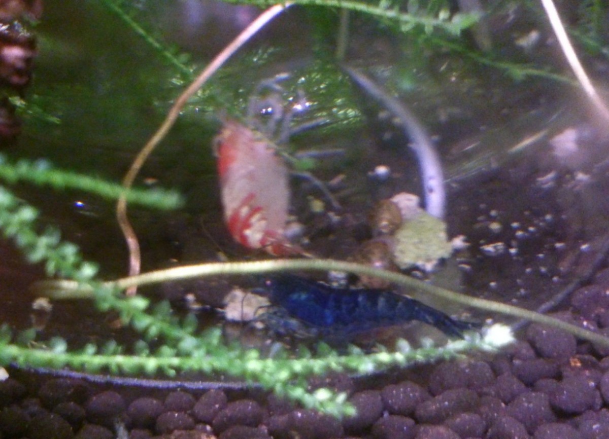 Chovám: Atya gabonensis 2x, Caridina amano 1x, Neocaridina davidi (wild a cherry forma), Neocaridina davidi orange sakura.