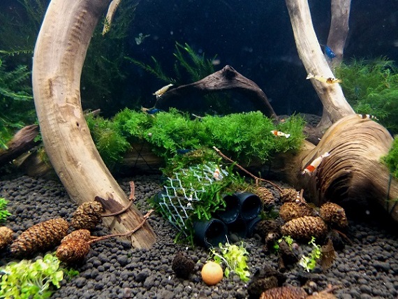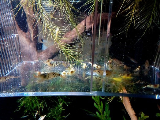 Osadenstvo bez strat, vela krevetiek sa zvlieklo. krevetkam zmena akva prospela. Vobec sa nenapadaju ako ked boli v mensom akva, kazda ma svoj priestor na zivot.Samicky 1x hybrid a 2x neo blue pustili vajicka. pobehuju tam malicky krpci. Uz by som mensie akva pre krevetky nezakladal.