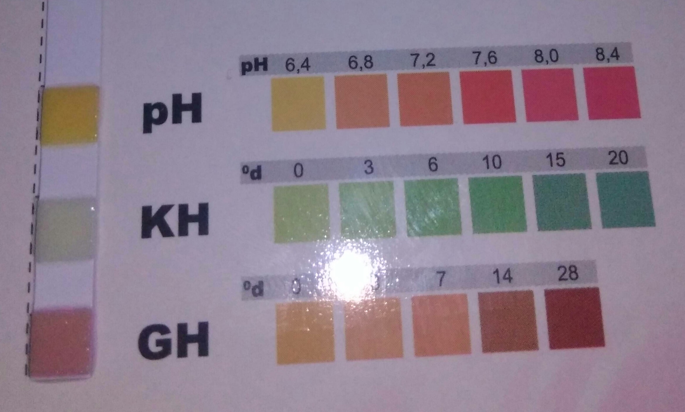 Podľa tohoto ukazuje cca 7 možno aj viac to fotka skreslí ale tieto papieriky sú tak moc nepresné že by som to naozaj ako relevantný údaj nebral...minule som videl porovnanie od Sera a Rataj kde Sera ukazovala ph 6,5 a Rataj nejakých 8,0 a podobne....čiže to je jasný dôkaz o tom ako dobre tieto testy fungujú. Keď už merať hodnoty vody tak kvapkovými napr. od JBL alebo Sera mám ich odskúšané