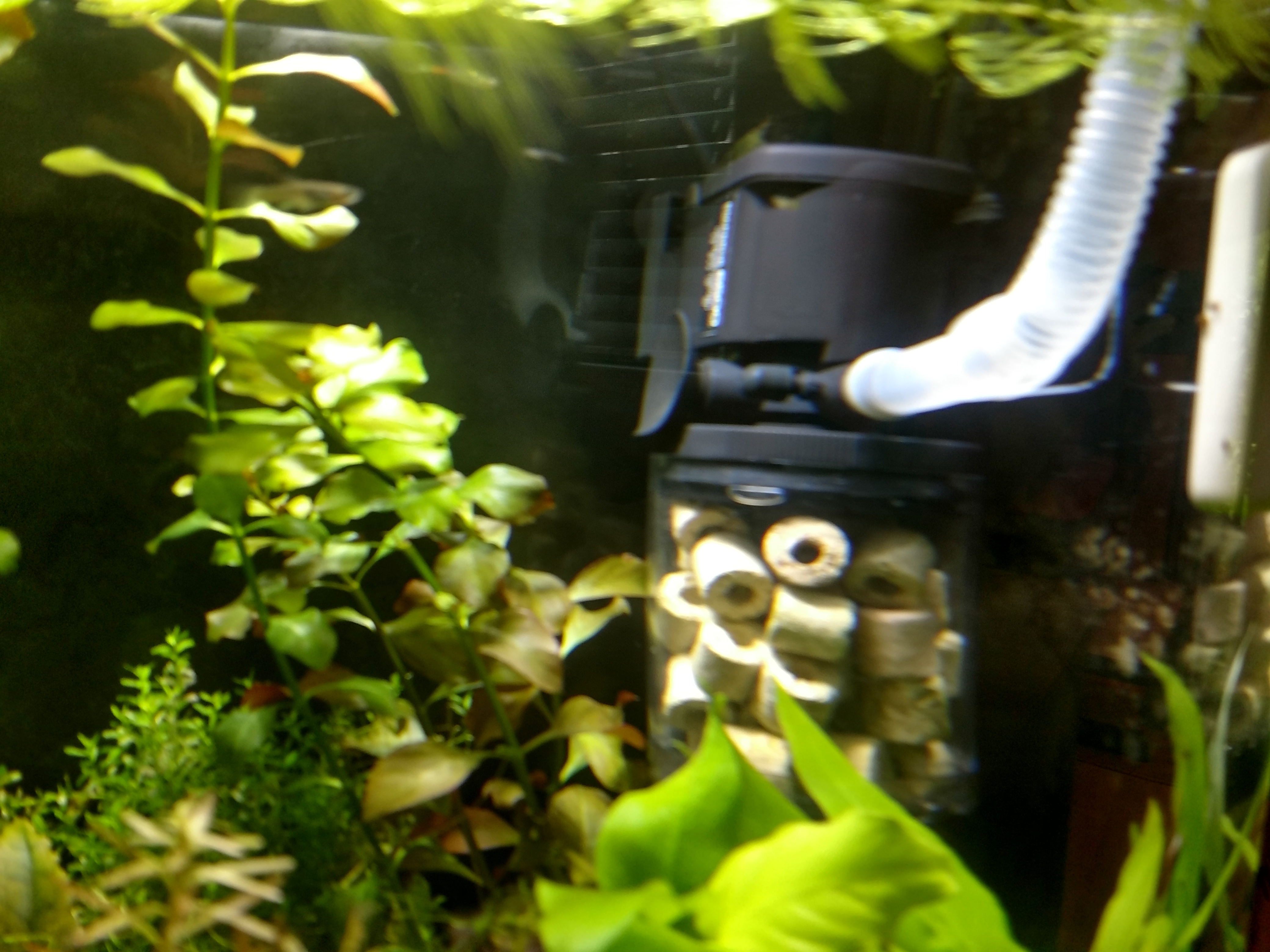 Moj filter v krevetkariu, cerpacia hlavica 650l/h nasava vodu a pusta ju cez rurku do filtracnej nadoby naplnenej keram.valcekmi a biomolitanom,