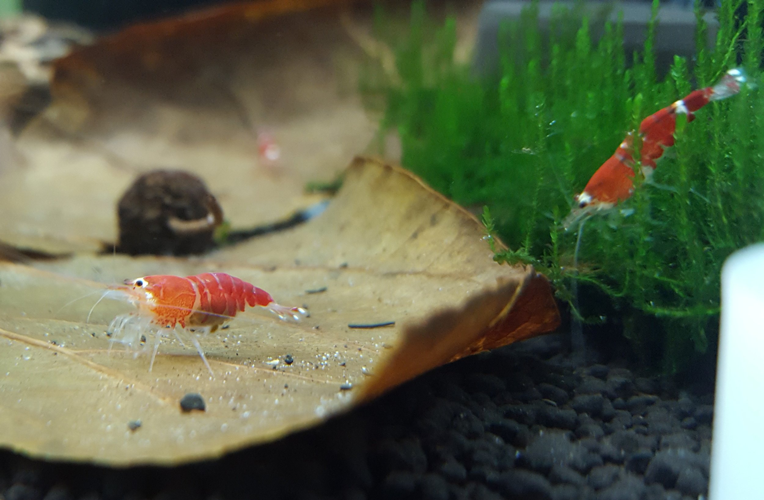 Aktualizacia, krevetky stale selektujem, biela je prec na dospelych, ale cervena este chyba. Mlade stale nie su vsetky po rodicoch, vid mlada vpravo. Este par rokov cistenia