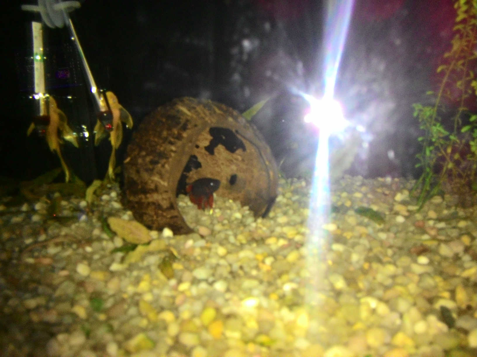 a tuto fotka bojovnice samca, ktory si doteraz ten kokos vobec nevsimal, ale ako som tam dal zavojnate prisavniky a samicku, tak je tam cely den ...
