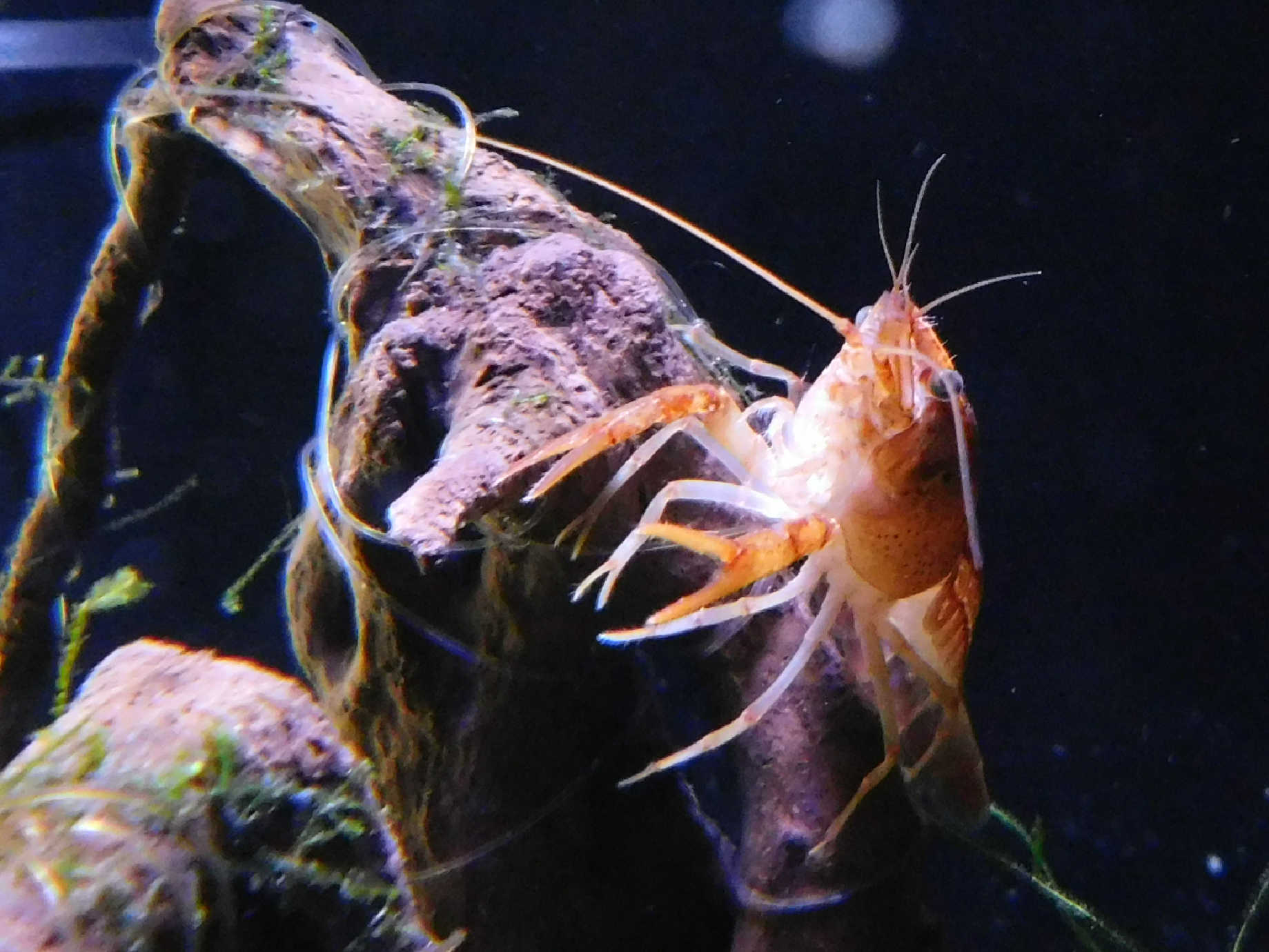 mlady rak, najvacsi zo vsetkych, rastie sam v 27L akva pri bojovnici ... je to zahradkar jak hovado, vsetok mach mi zachvylu zozerie ... ale hlavne ze sa mu dari