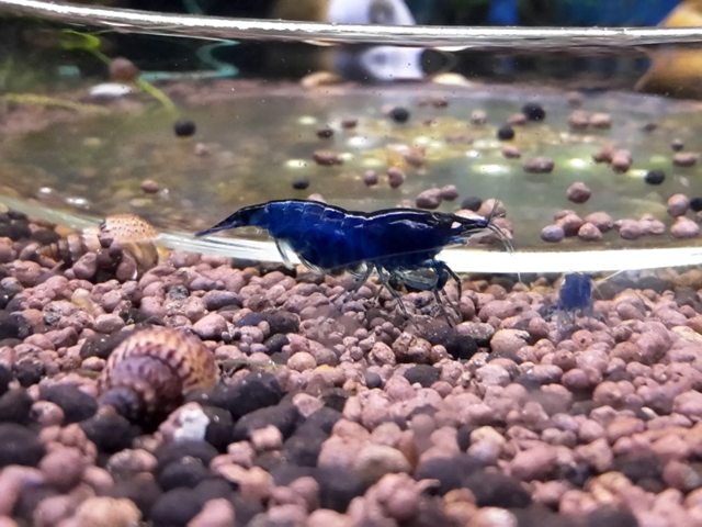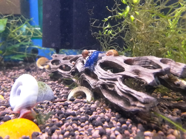 Moje modre neocaridiny - blue topas, fotene mobilom. Spravim lepsie foto fotakom ked bude cas...