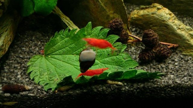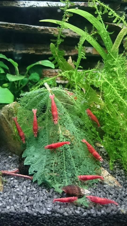 Chovám: Atya gabonensis 2x, Caridina amano 1x, Neocaridina davidi (wild a cherry forma), Neocaridina davidi orange sakura.