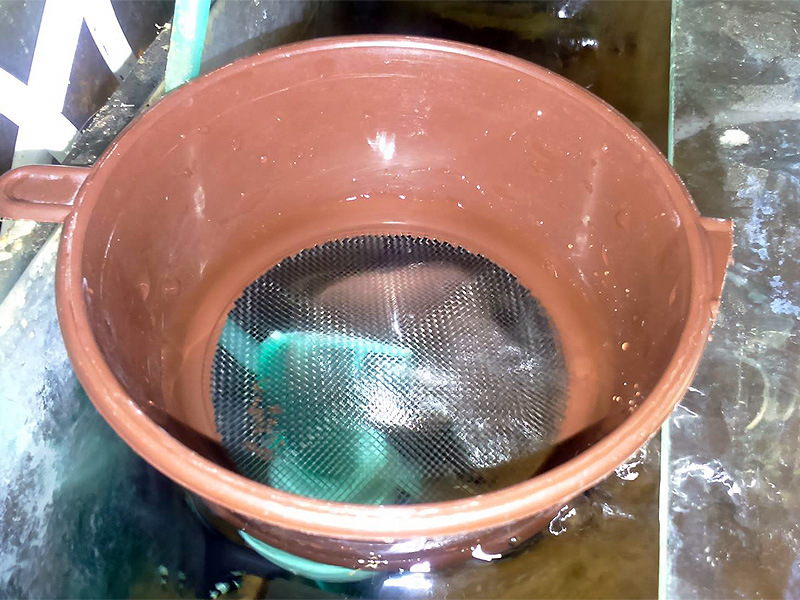 Ram sietky som polozil na jednu stenu akvaria a o protilahlu stenu som oprel rucku sietky(ram sietky je hranaty, nie okruhly). Aj ked v akvariu neboli krevetky nemali by sa ako ku vajickam dostat.