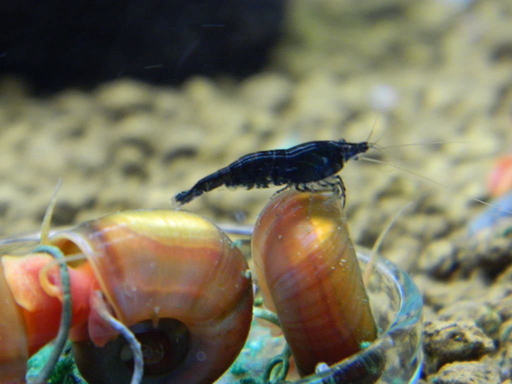 Krevetky sú vcelku čiperné, obzvášť tie Denisové lietajú po celom akváriu a nejak občas vidím, že sa niektoré ako keby pokúšajú vyskočiť,keď sa snažia plávať k nápusti.