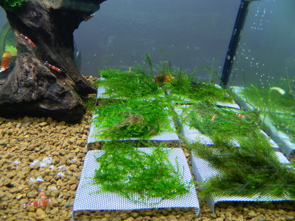 Ako zabratie dna mi problém nerobí, ale časom ak sa machy rozrastú pôjdu mriežky aj na steny. Predtým som mal jávsky mach len na prísavkách prichytený. Na design sa moc hrať nechcem a som si povedal že do akvária ruky moc strkať nechcem. Lebo predtým som sa v ňom vrtal neustále (keď tam boli rastliny). Hlavne si chcem namnožiť mach mini pellia lebo ten sa mi asi najviac páči.