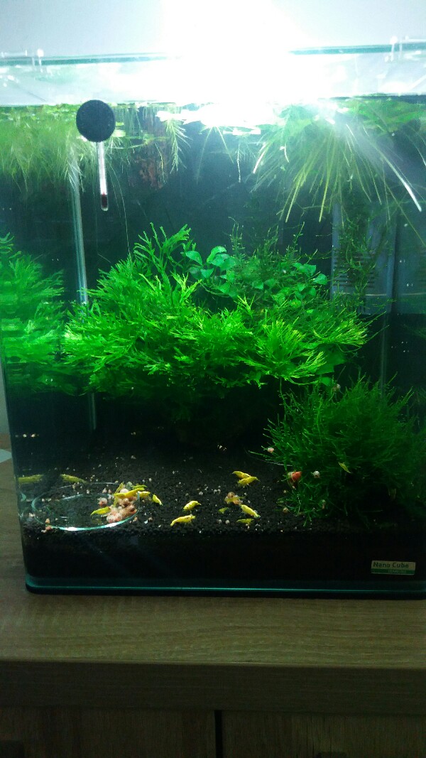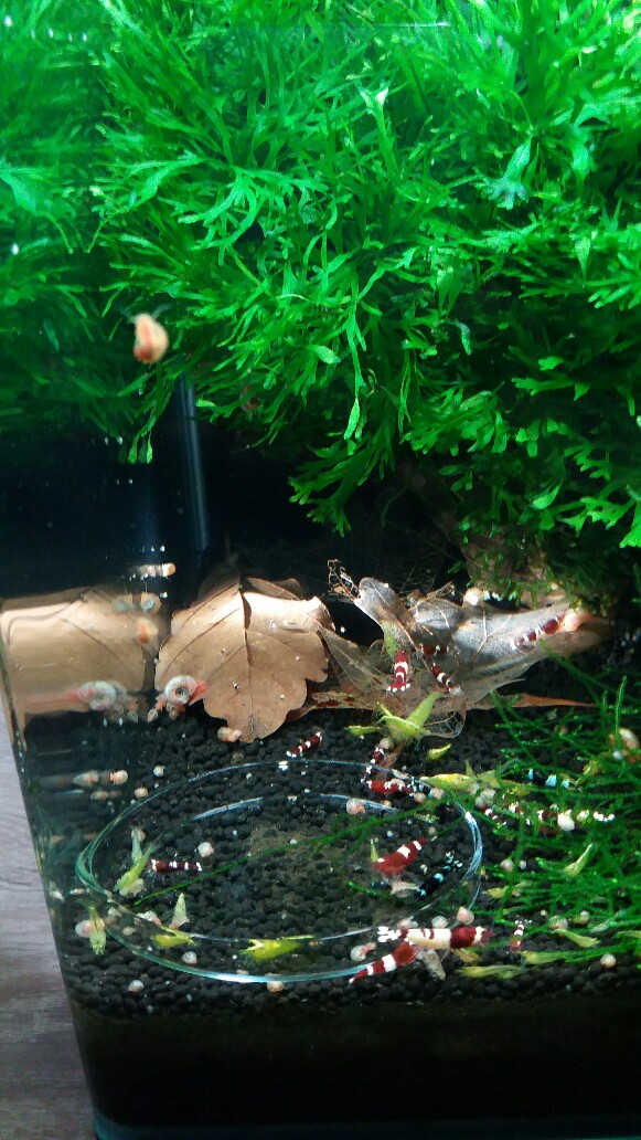 Chovám: Atya gabonensis 2x, Caridina amano 1x, Neocaridina davidi (wild a cherry forma), Neocaridina davidi orange sakura.