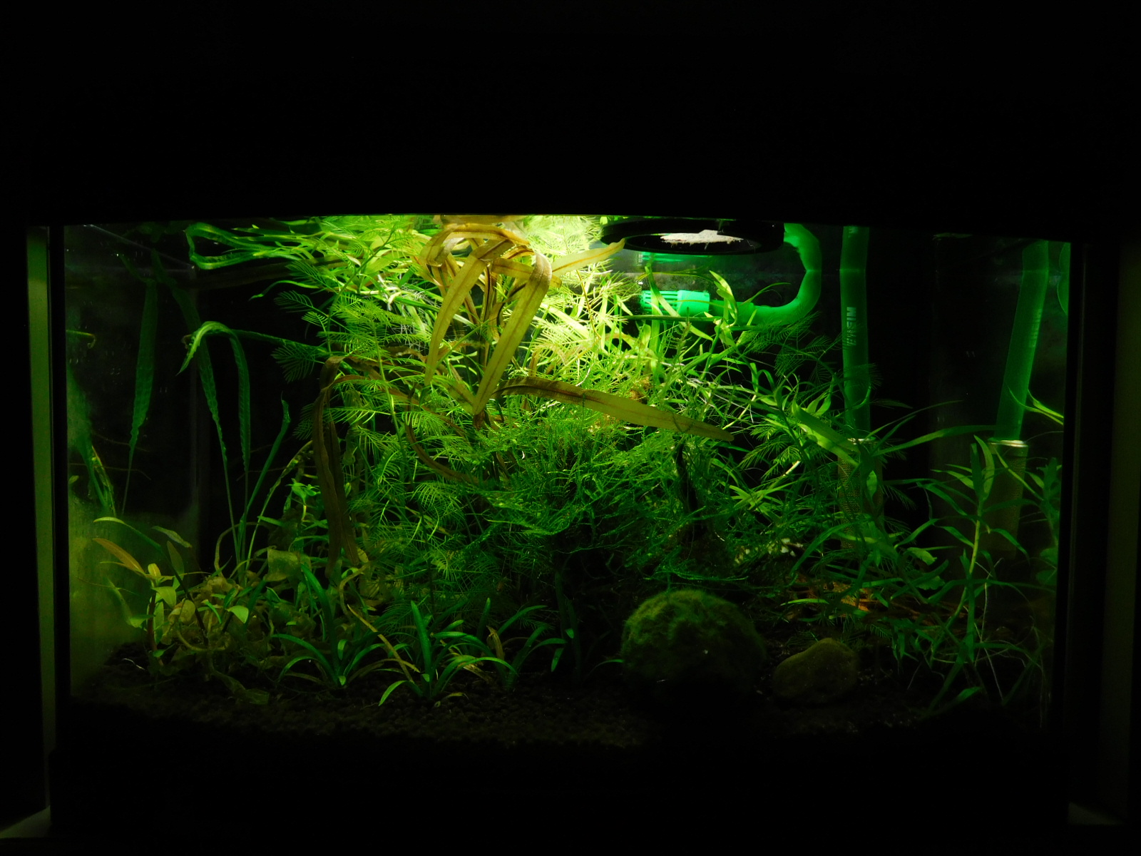 krevetiek je uz vela v tom malom,tak mozno aj stovku malych som prelozil,asi dam spat aj bojovnicu,iné ryby zatial nie,ked sa ukludni zivotny zhon,teraz naozaj nemam cas na 5dnove vymeny,ked to nebude aponogetonom vyhovovat alebo budu chradnut bohuzial,