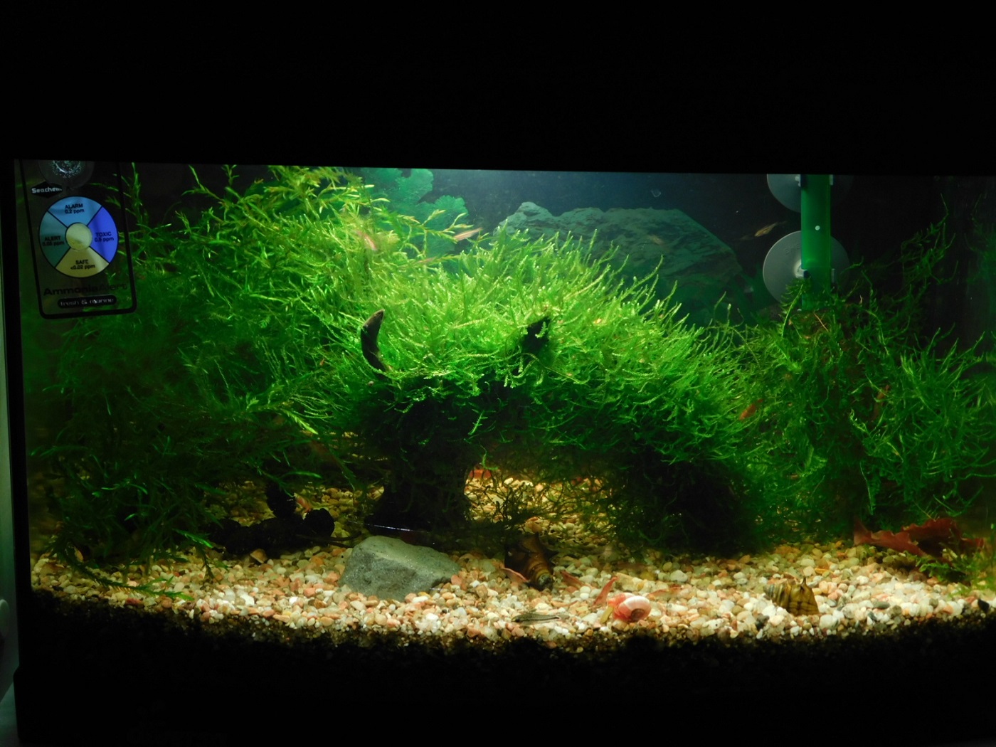 Machy sa ťahali von z vody,rastliny prosperovali,ryby zdravé,no odolné Red cherry to neprežili.