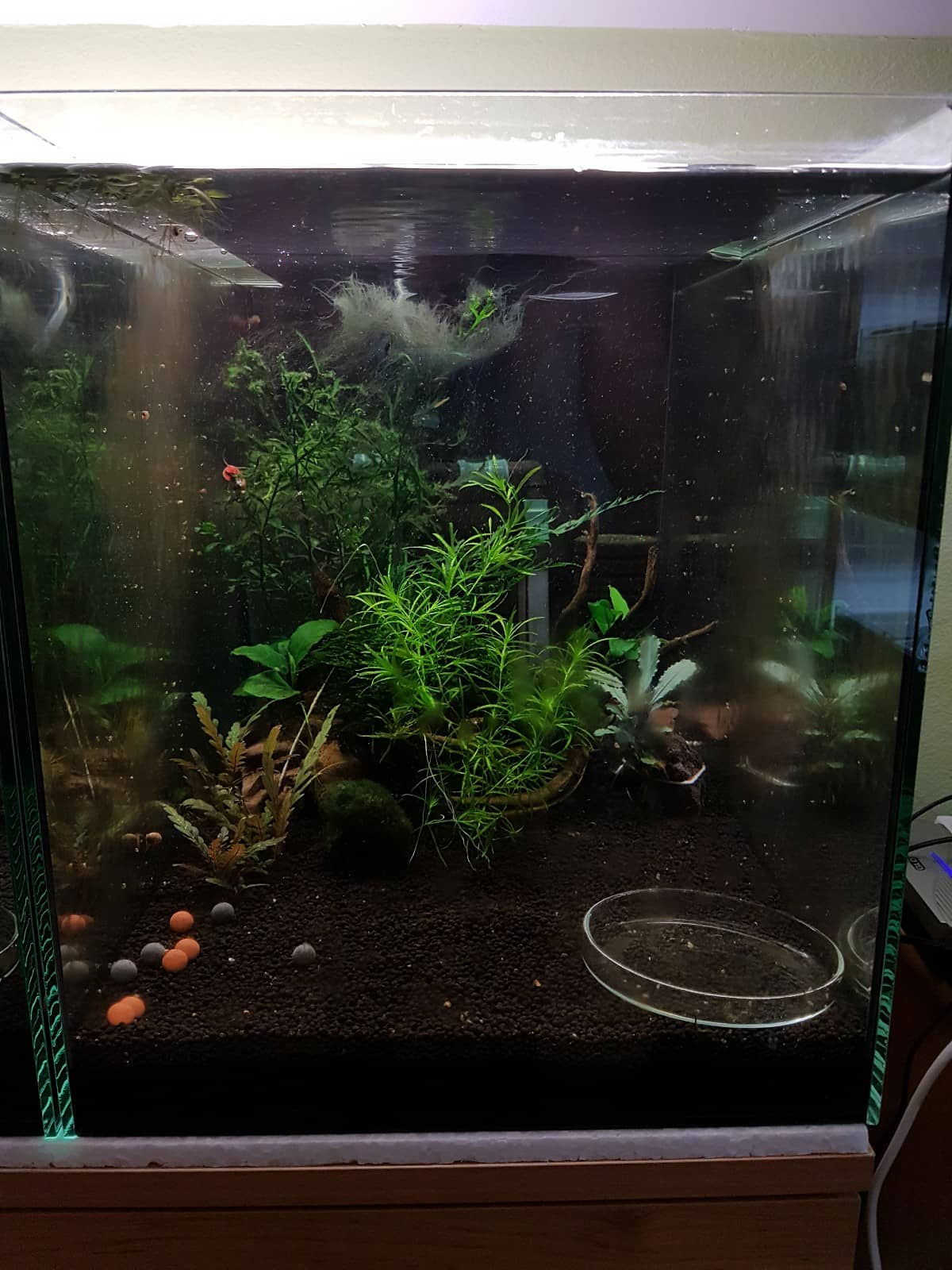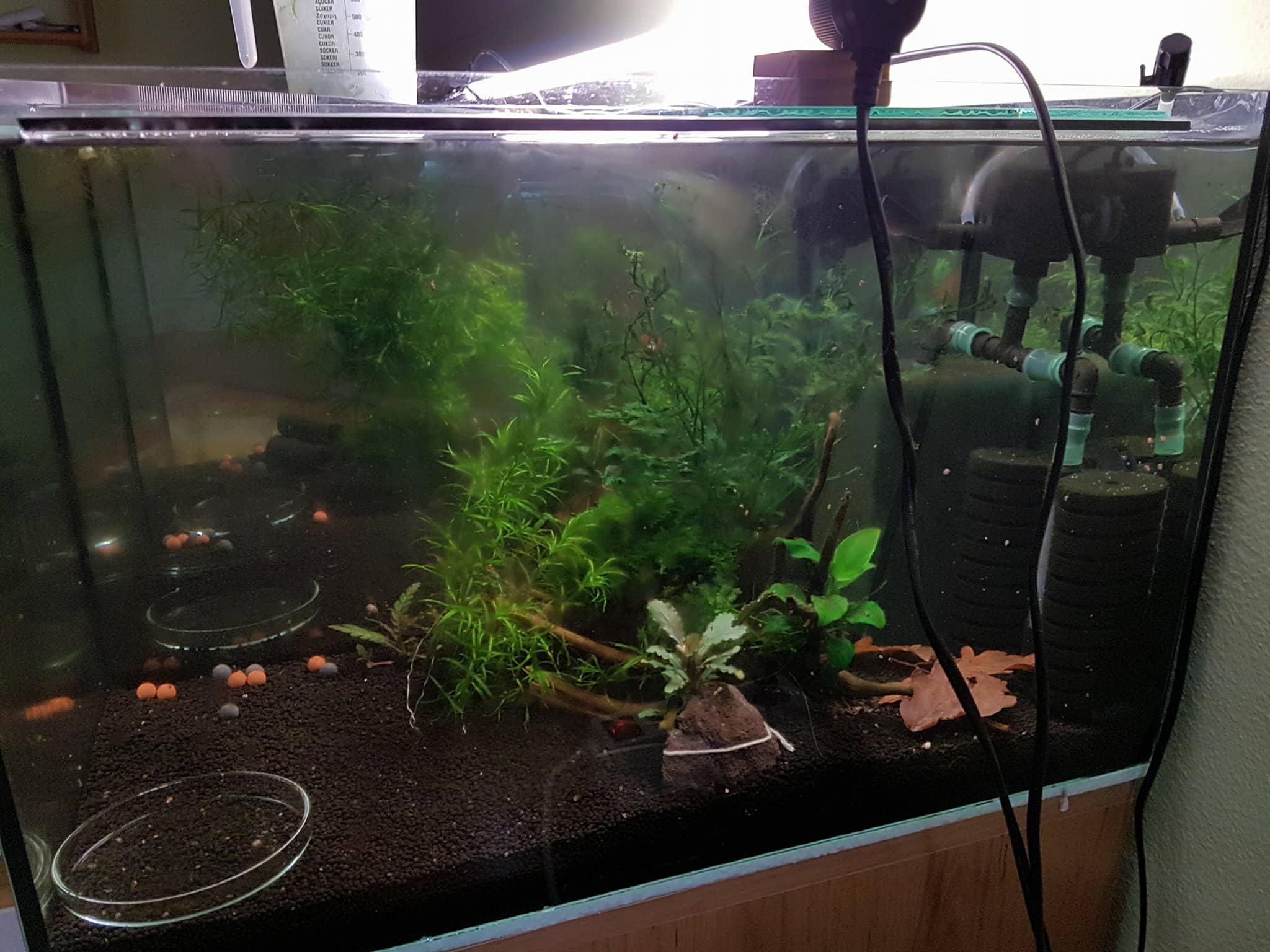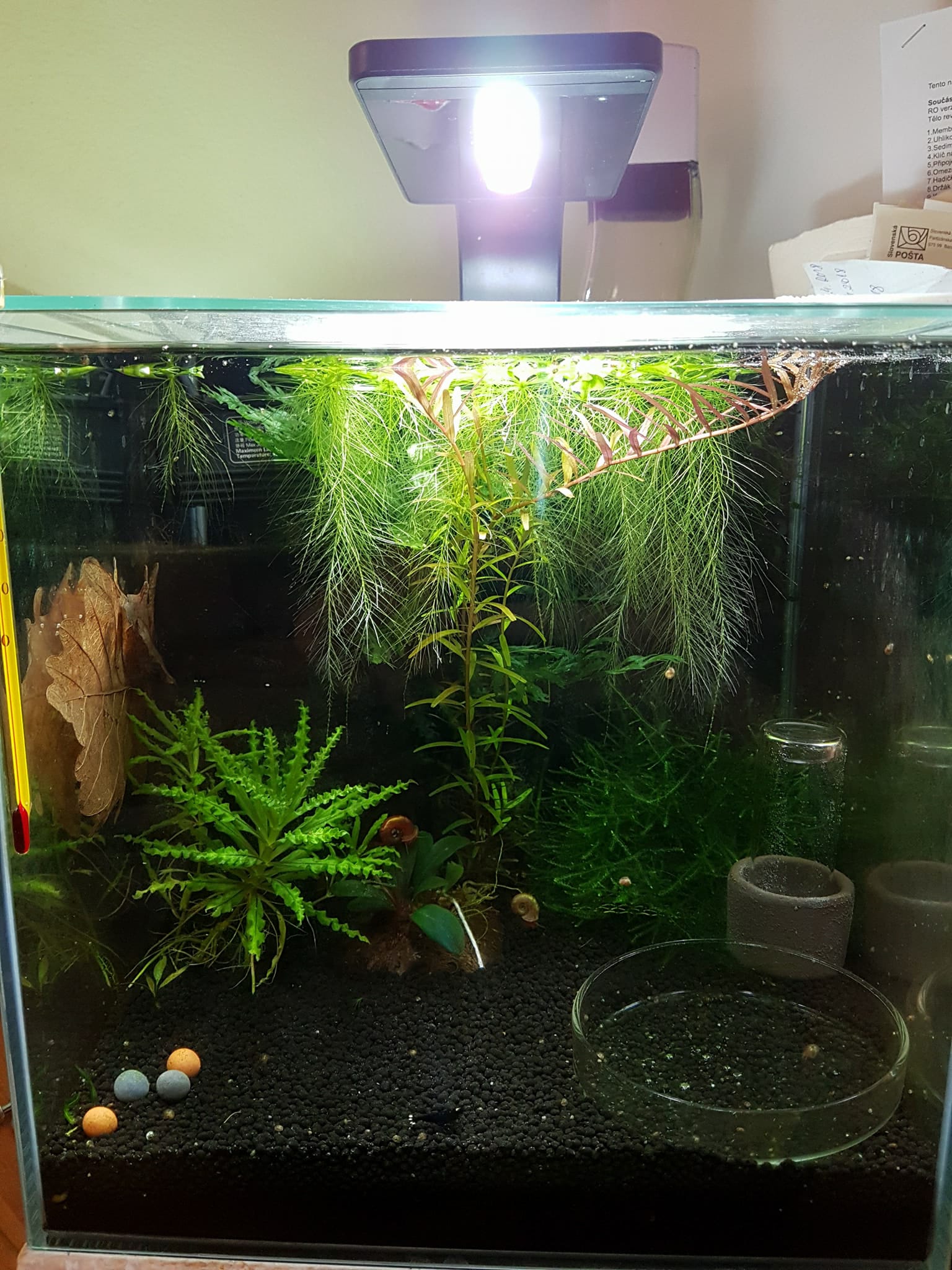 Ahojte, po dlhšej dobe sa mi konečne podarilo spustiť plánovanú minichovňu ktorú mám vo svojej izbe. Bohužiaľ sa mi nedá z priestorového hľadiska momentálne nič väčšie poriešiť ale keďže mám ešte s krevetami málo skúseností postačí na začiatok aj toto.