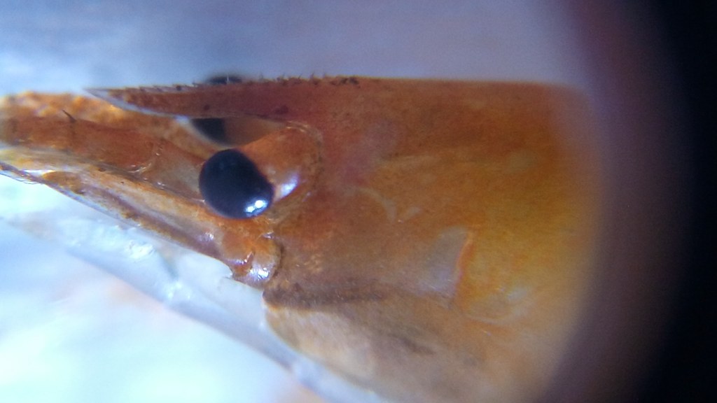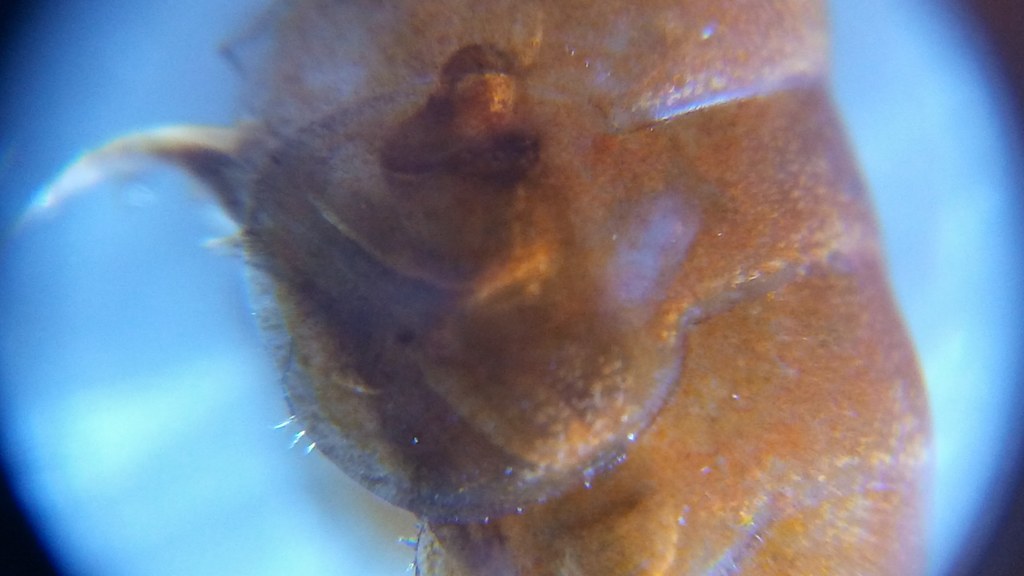 Takze sme o krok vpred, krevetky dva napadnute exemplare som hodil pod mikroskop a takto to vyzera. cize ziadne vajicka nemaju, vyzera to na prvy pohlad ako nekroza, ale bude to niecim napadnute... Krevetka vyzera vlastne ako keby nosila velmi tmave vajcia, chovanie viac menej bez pozoruhodnosti, ale to sfarbenie spodnej casti brucha a pri ustnom otvore bije do oci, je to vyrazne. Tazko byt teraz mudry