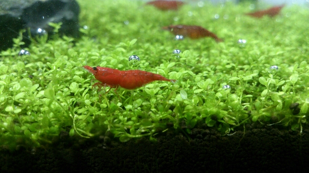 Chovám: Atya gabonensis 2x, Caridina amano 1x, Neocaridina davidi (wild a cherry forma), Neocaridina davidi orange sakura.