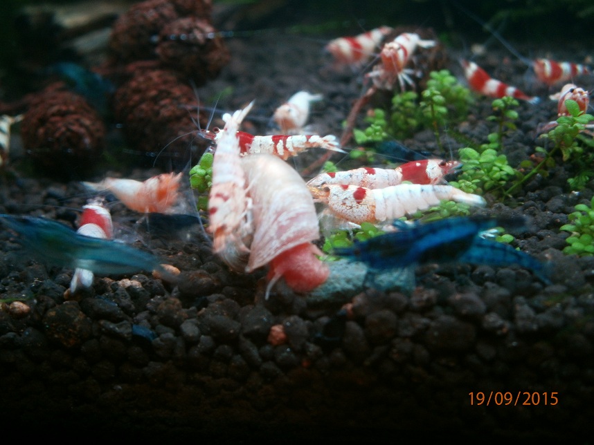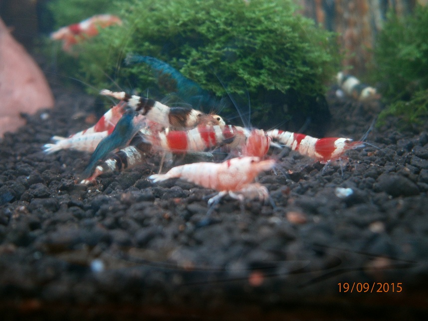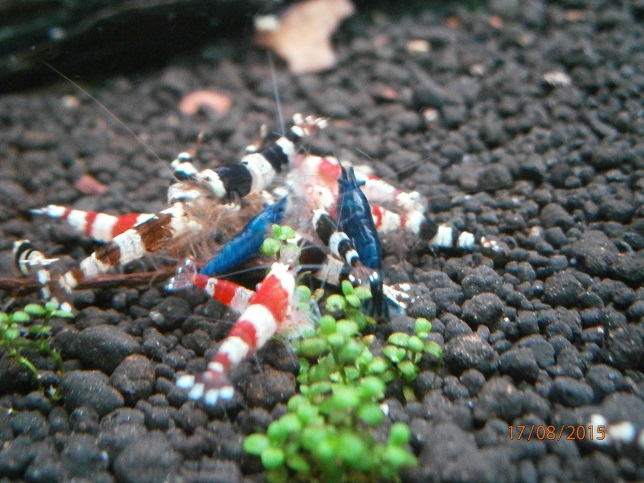 Po prelieceni akva ziadny uhyn, krevetky sa zacali aj mnozit, dalsich par samiciek nosi a dalsie dve modre su napratane na prasknutie. Hnojivo na rastliny som prestal pouzivat a tak isto aj co2ku som nahradil tekutou co krevetky privatali. Ako som prestal davat co2 su krevetky culejsie. Pomohli aj pripravky od benibachi ktore objednavam z polska, buduci tyzden ocakavam dalsiu zasielku.