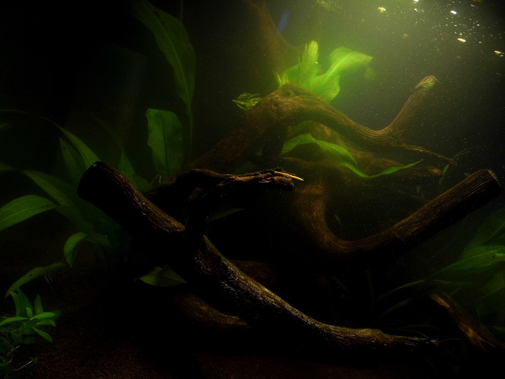 Akvárko pod led osvetlením,ktoré som si zmontoval doma sám.
