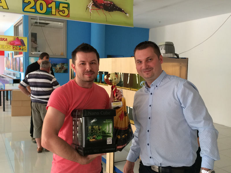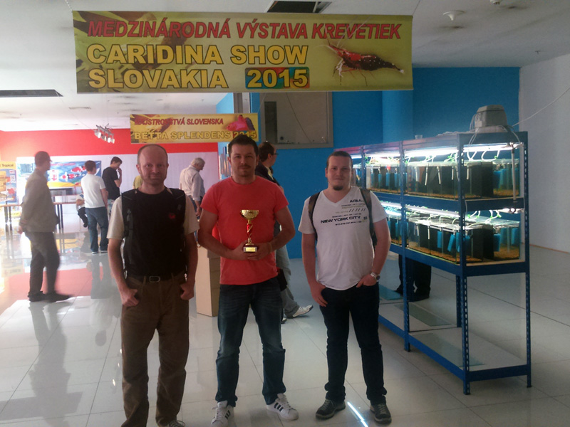 Mrzi ma, ze som sa nemohol zucastnit prednasky v piatok o 16hod. Tiez ma mrzi, ze v sobotu som nebol. Ale aj tak som sa dnes potesil, ked mi pri vstupe chalani hlasili, aby som cakal kde som a prevzal ceny za celkove druhe miesto medzi krevetkami na Medzinarodnych majstrovstvach Slovenska - Caridina Show Slovakia 2015. Poviem pravdu, aj napriek tomu ze sa akvaristike venujem od ZS, som sa prvykrat zucastnil akva sutaze a bol som milo prekvapeny uspechom. Prikladam par foto z dnesnej nedele. A konecne sme sa aj par krevetkarov tu z fora stretli na akcii...