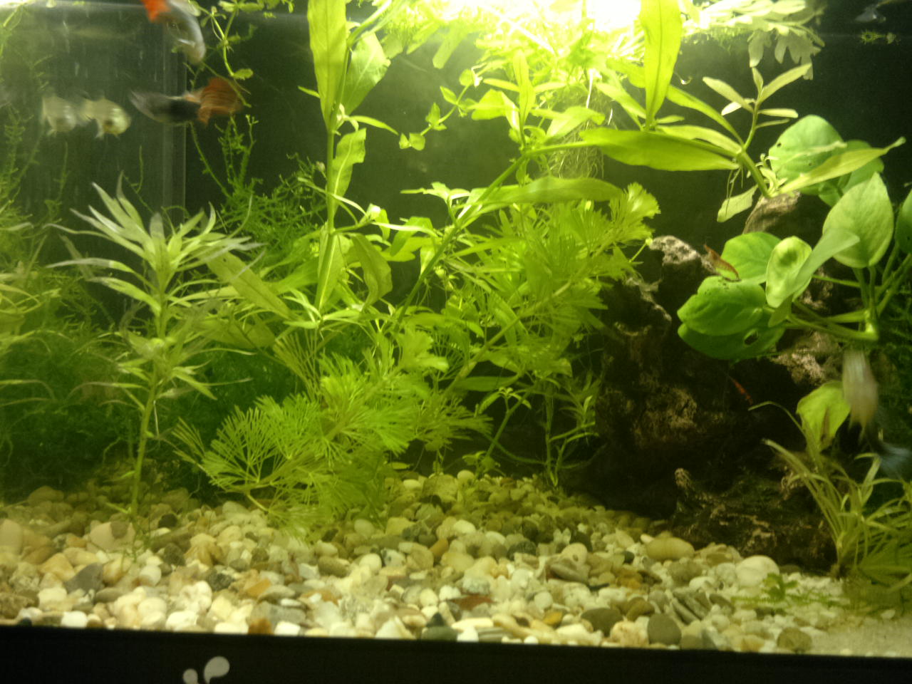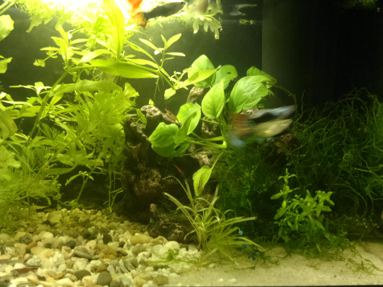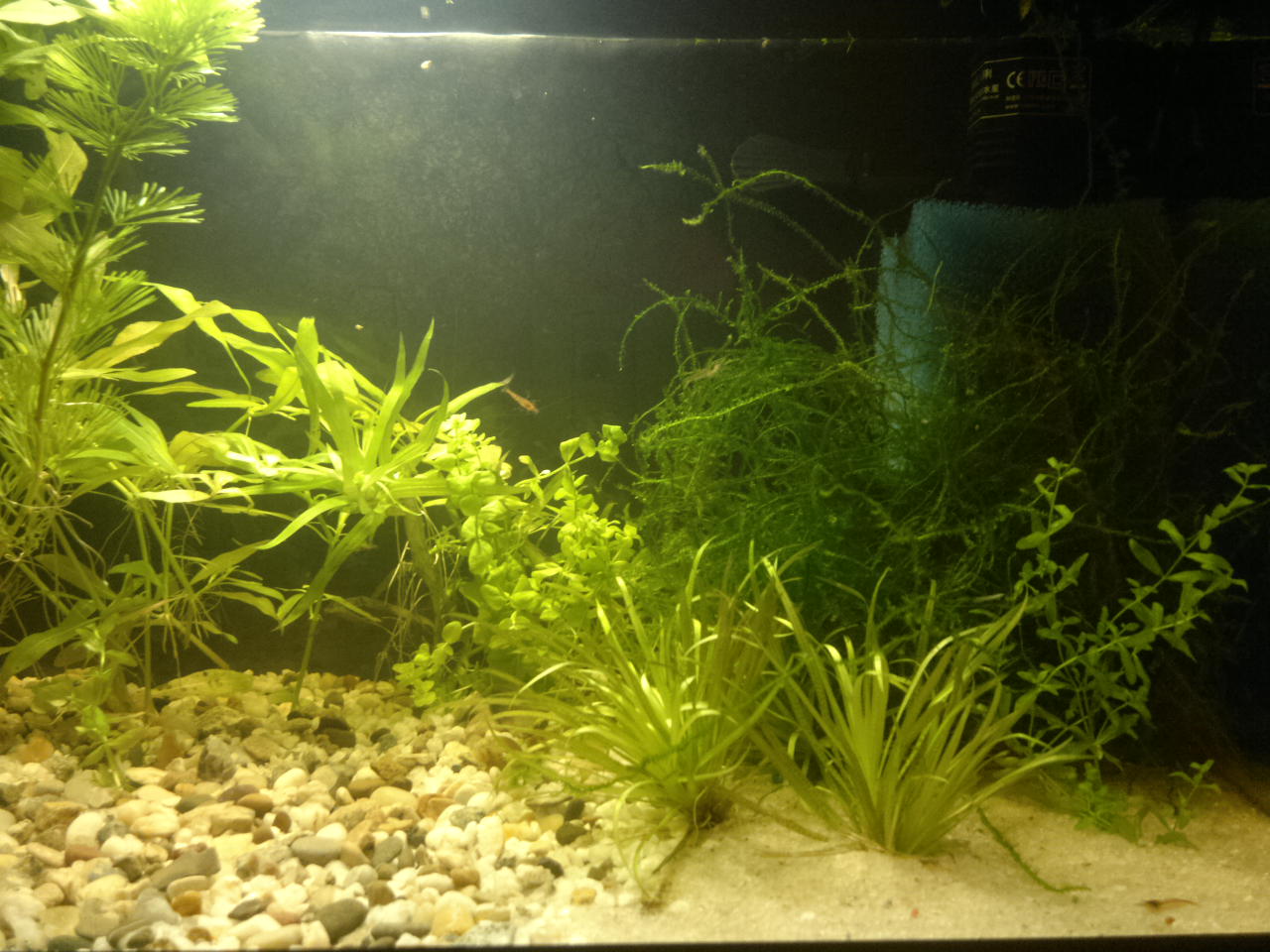 takze, cerpacia hlavica hailea s biomolitanom bola vymenena za filter Tetra tec easy crystal 250, blixa japonica pomaly odisla,ako som cakal, pribudol koren a anubias barteri var.nana ktory je na koreni, tu su aktualne fotky, stale sa mi nepodarilo zbavit sa gubiek.rastlina ktora rastie ako besna je na hladine plavajuci rohatec (cerateptoris cornuta)