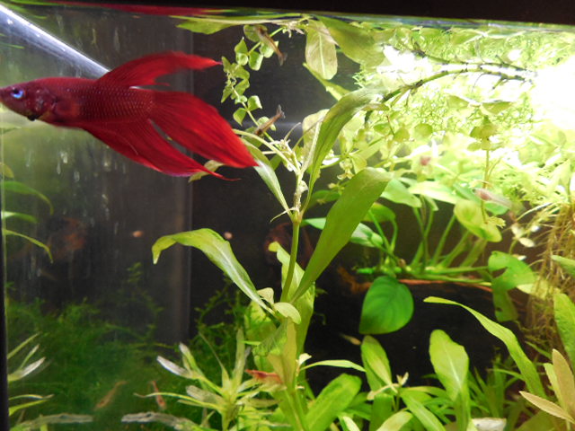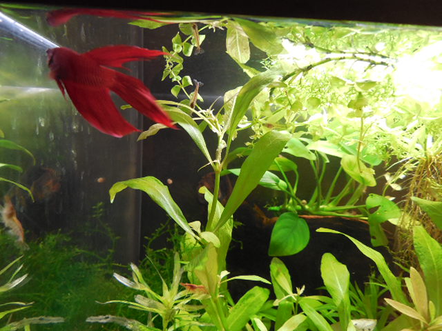krevetkarium ma noveho obyvatela,, je to cerveny bojovník,zatial sa mu pači v akvariu,, je to zmena oproti kelimku z predajne