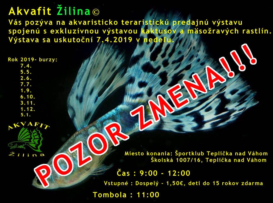 Vidime sa v nedelu 2.12.2018 na akva burze v Ziline v Dome techniky, od 7-11hod. - idealne rezervovat si predom zivocichy.