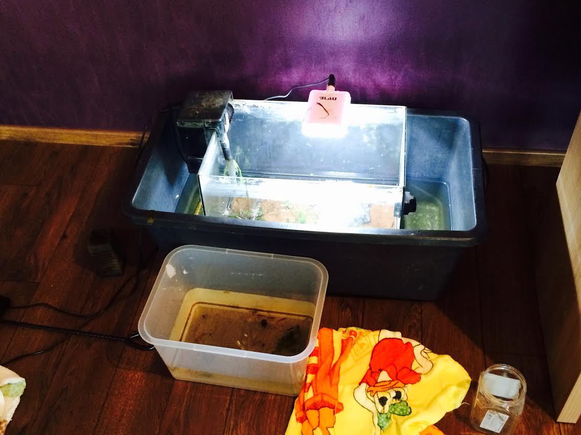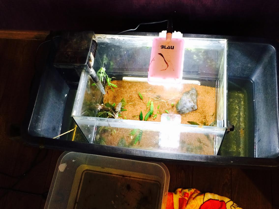 Tak s akváriom je asi definitívne koniec (a asi aj s krevetkami) dnes nad ránom ma prebudil zvláštny žblnkot vody a keď som prišiel do vedľajšej izby čakal ma dosť šok, všade po zemi bola voda a akvárium takmer prázdne .... snažil som sa zachrániť, čo sa dalo no už bolo viac menej neskoro, z neoniek sa mi podarilo zachrániť 4 (z 20) a krevetiech zo 8 veľkých (malú som nenašiel ani jednu, buď ich vyplavilo alebo boli niekde v substráte) takže smola no. Na rýchlo som začal o 3 ráno odpúšťať vodu z veľkého akva do najväčšej (čistej) plastovej nádoby, čo bola po ruke. Dal som tam závesný filter, ktorý tam drží viac menej len silou vôle a lampu som "vyrobil" zo stolovej lampy + akváriového svetla blau.
