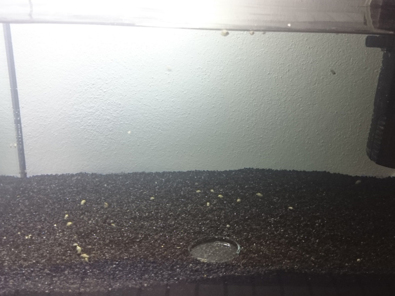 Do akvária som dal 50 ks slimákov Physa. Na večer som umiesnil samičku do akvária.