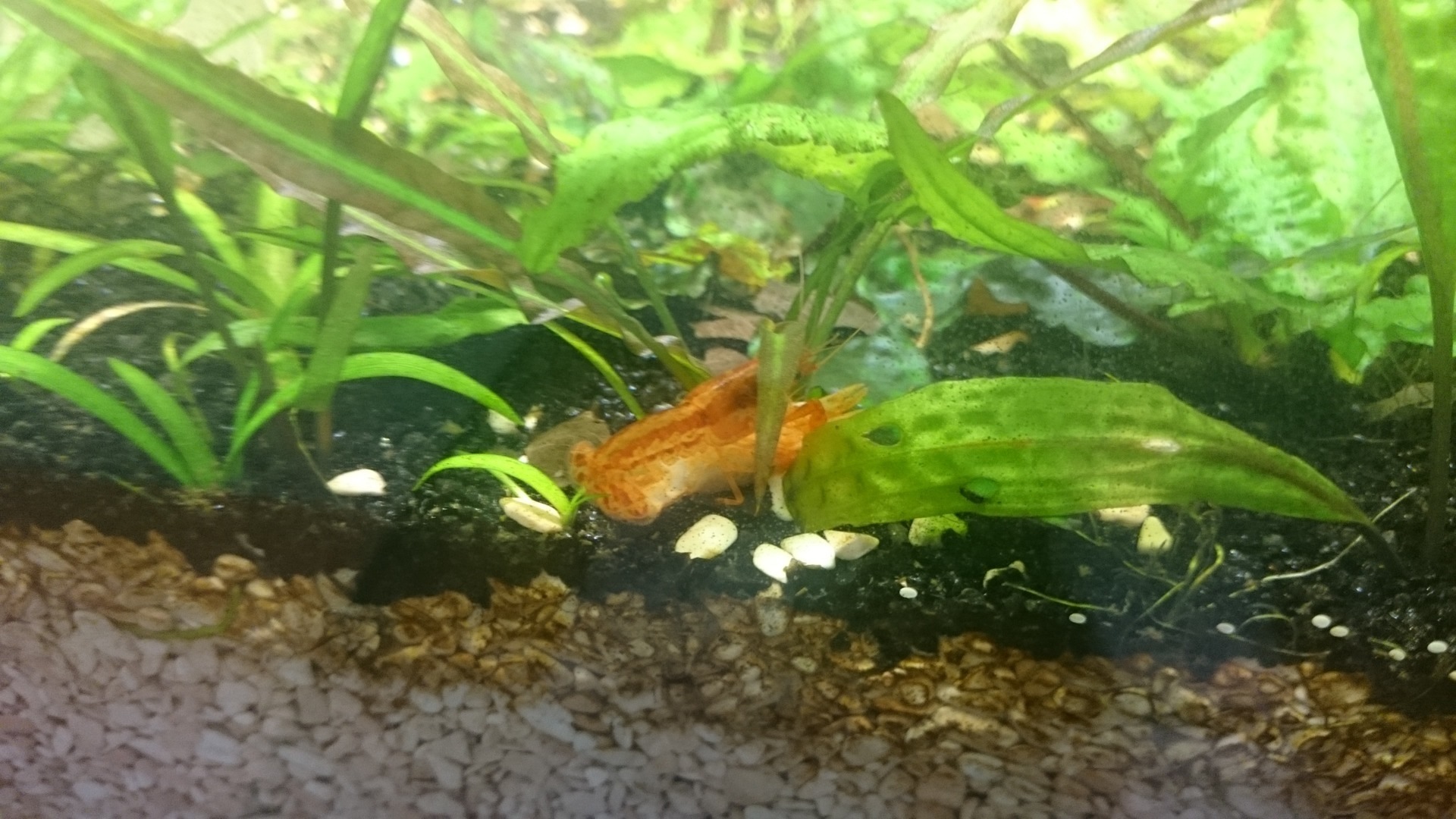 Osádka: 1 ks samička CPO + slimáky Physa (snaha je o ich rozmnoženie a aby trochu podporili štart dusíkového cyklu + ako potrava, kŕmiť sa ich budem snažiť minimálne).