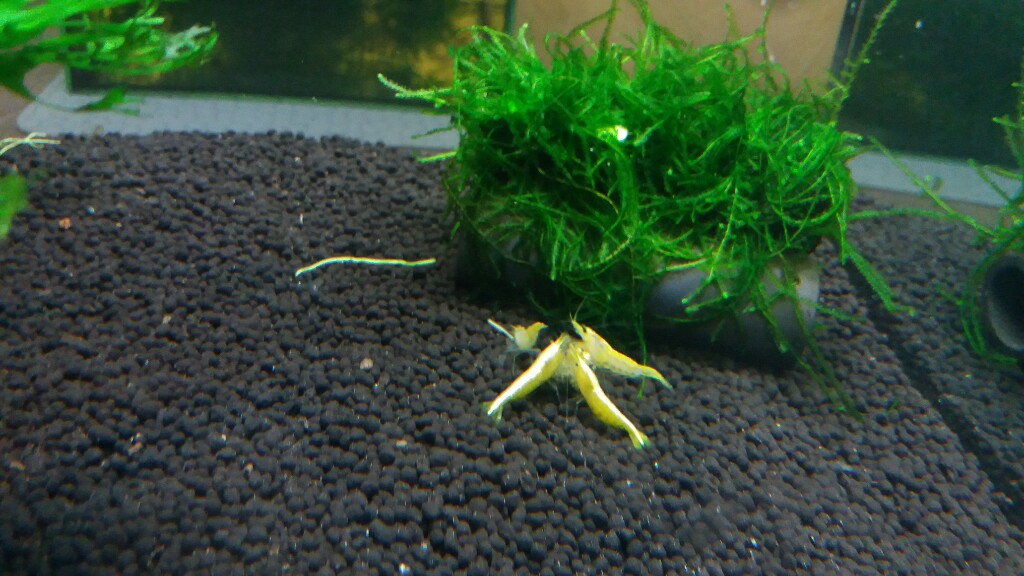 Denis tie neocaridiny boli vsetky zlte ale niektore akoby stratili vekom pigment (niektore samice su uz dost stare, mozno im vadila priliz makka a kysla voda). A bol tam primiesany taky nepekny samcek a kym som ho odstranil tak stihol ...