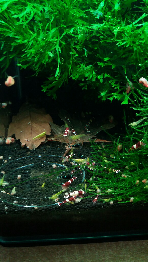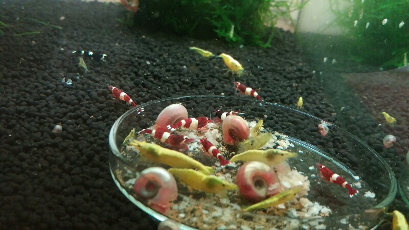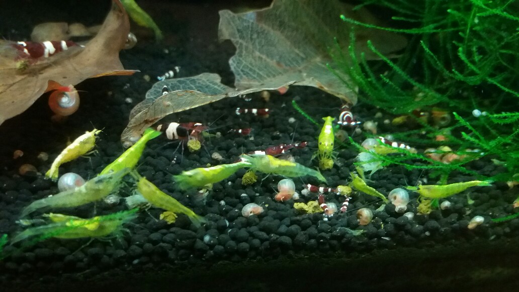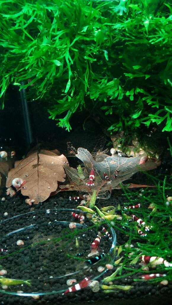 Chovám: Atya gabonensis 2x, Caridina amano 1x, Neocaridina davidi (wild a cherry forma), Neocaridina davidi orange sakura.