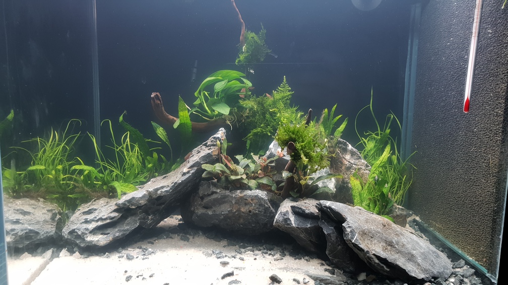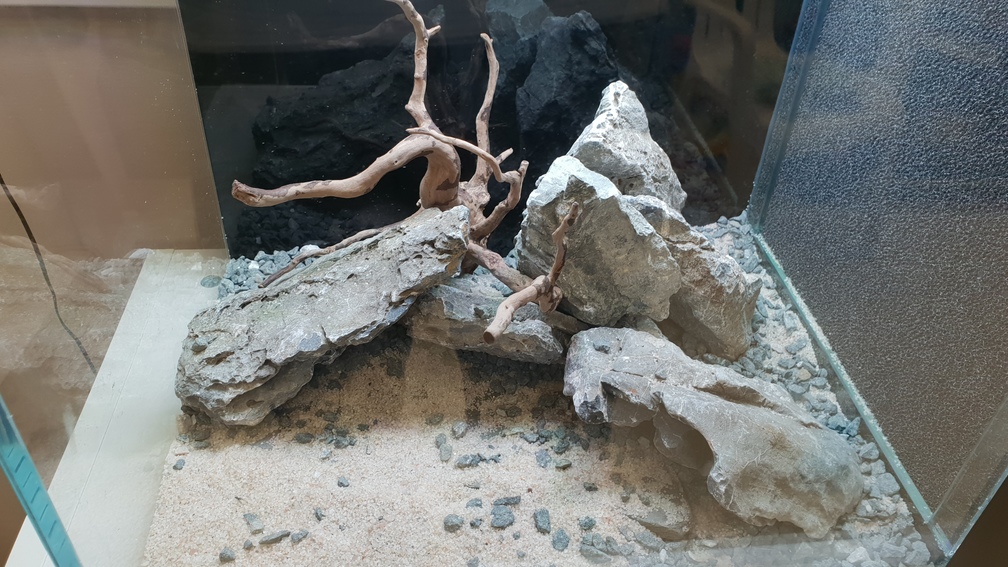 Tie skaly podla mna budu super na porastenie riasami, ktorymi sa prave dennerli mnozia, to si dobre vymyslel s nimi a tiez slizia ako ukryt. S pociatku budu len v nich krevetky zalezene.