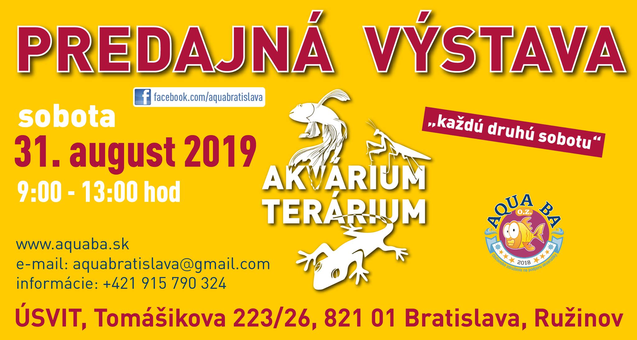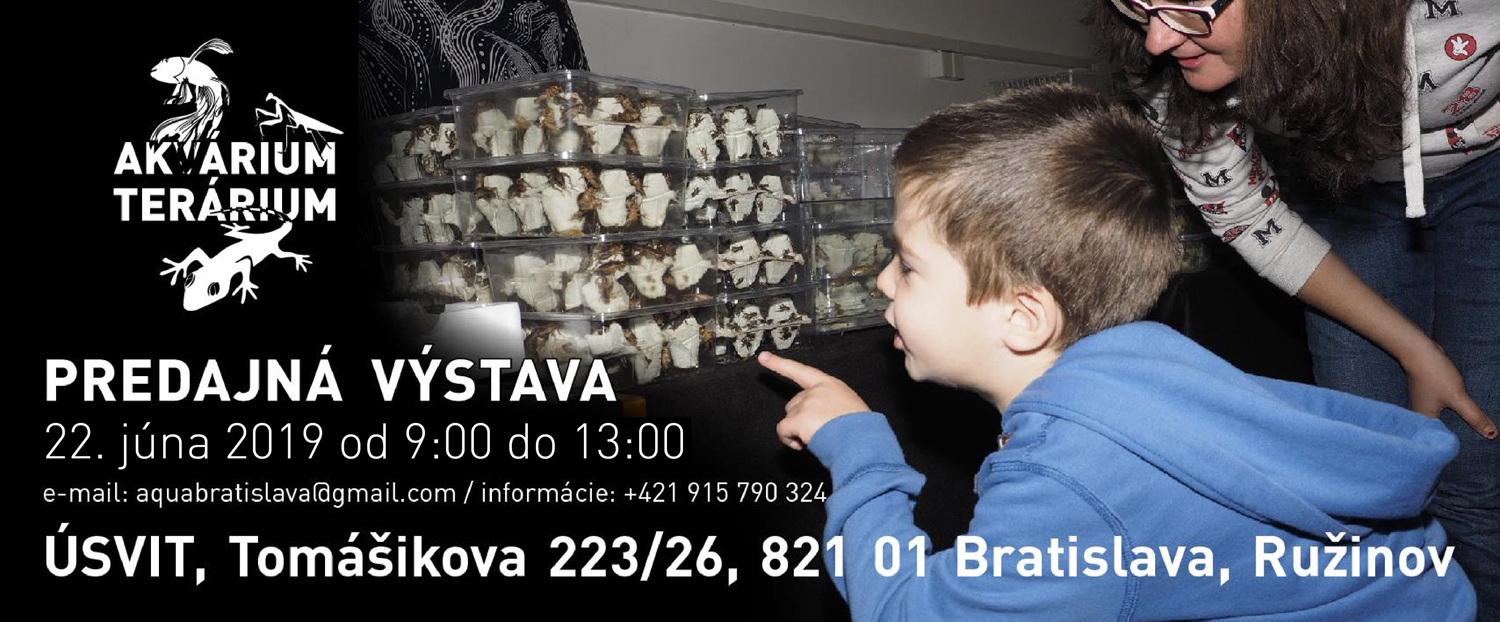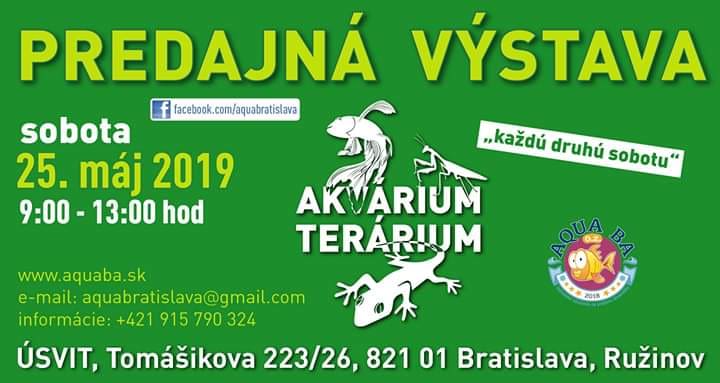 Ahojte. Opat ako kazde dva tyzdne sa kona dna 25.5.2019 akva vystava v Bratislave - budova Usvit, ul. Tomasikova 26, od 9-13hod. - mozete si rezervovat predom zivocichy.
