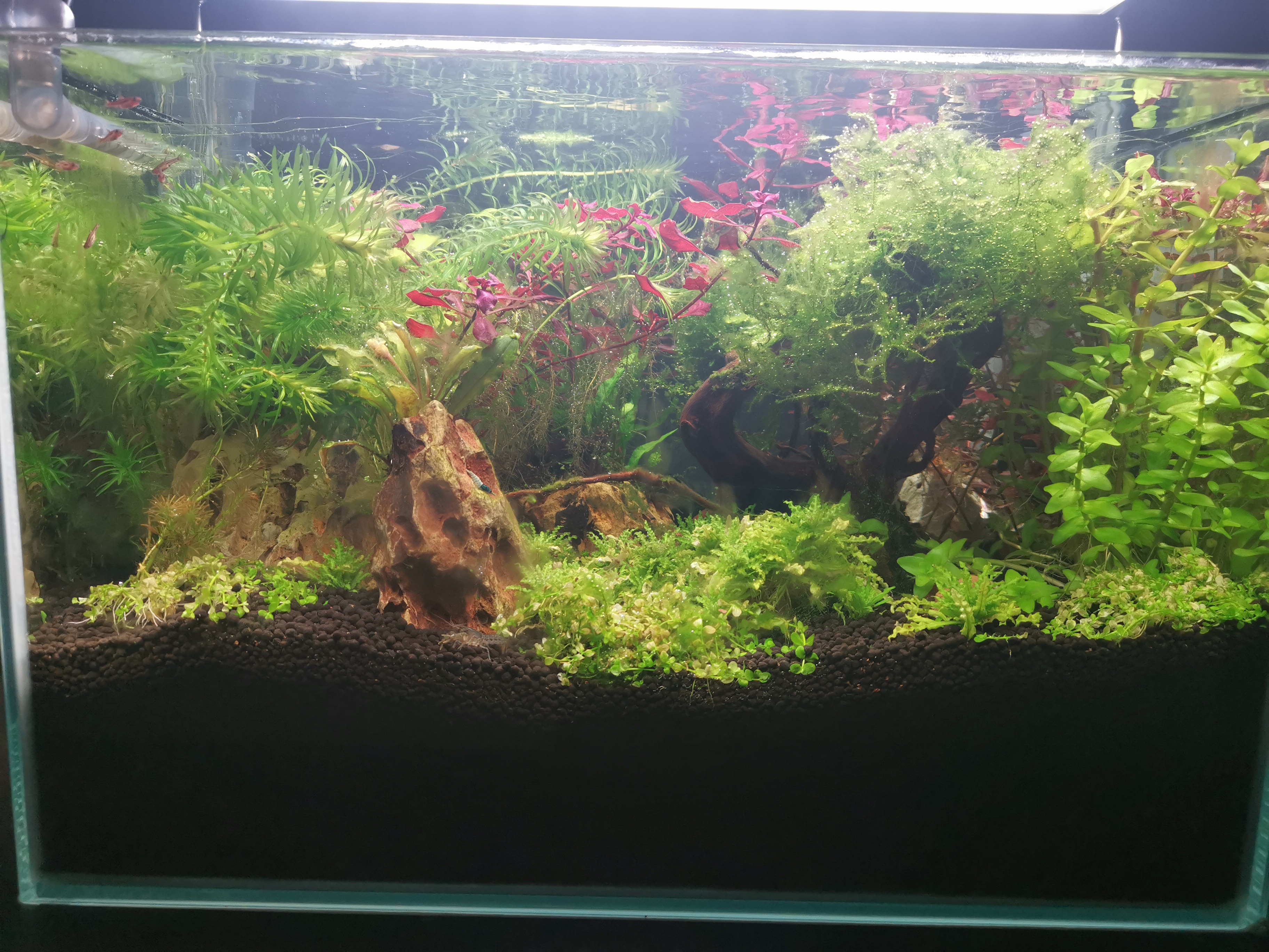 Zvierata: 2x neritina, 2x planobarius modrý, 7x razbora bornejska (zháňam ďalšie), 2x diminitus, 5x Japonica na riasy a testujem 5x Blue Bolt (žijú vyše týždňa takže idem po zvyšok)